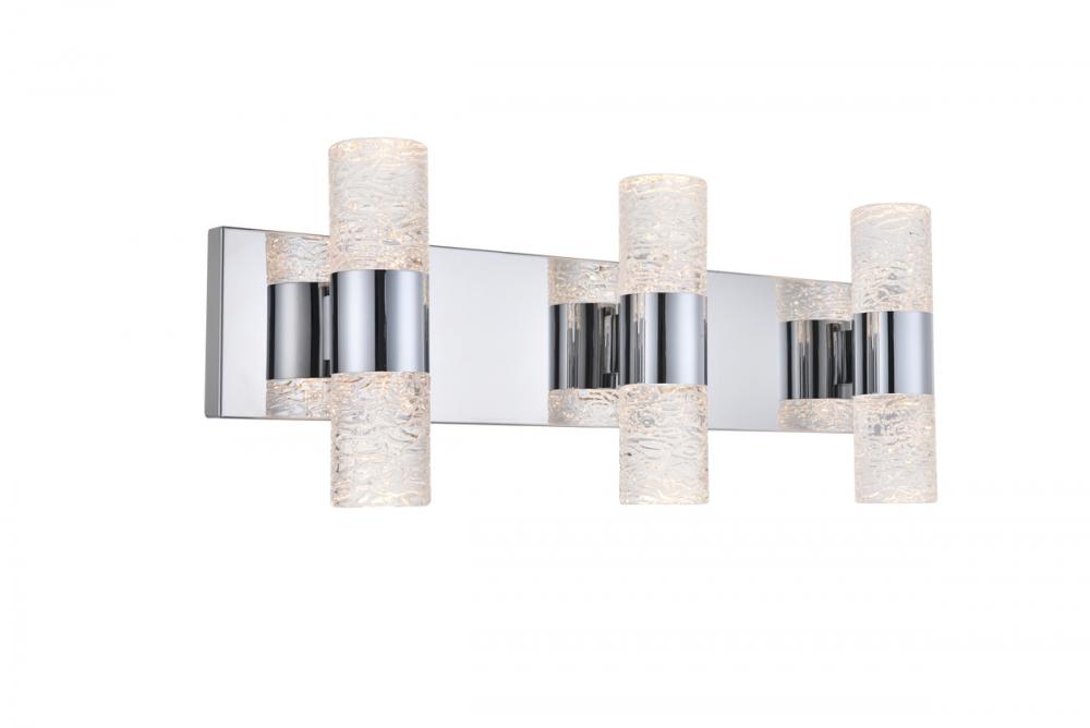 Immerse yourself in the beautiful Vega 3-light wall lamp in a sleek chrome finish. The intrigue of the lights shining through make it seem as if the entire fixture is glittering with celestial allure and will have you and your guests gazing in awe. Just as a star in the midnight sky, this wall lamp will surely shine brightly in your home, guiding you to your location, whether within your hallways, bathroom, or powder room.