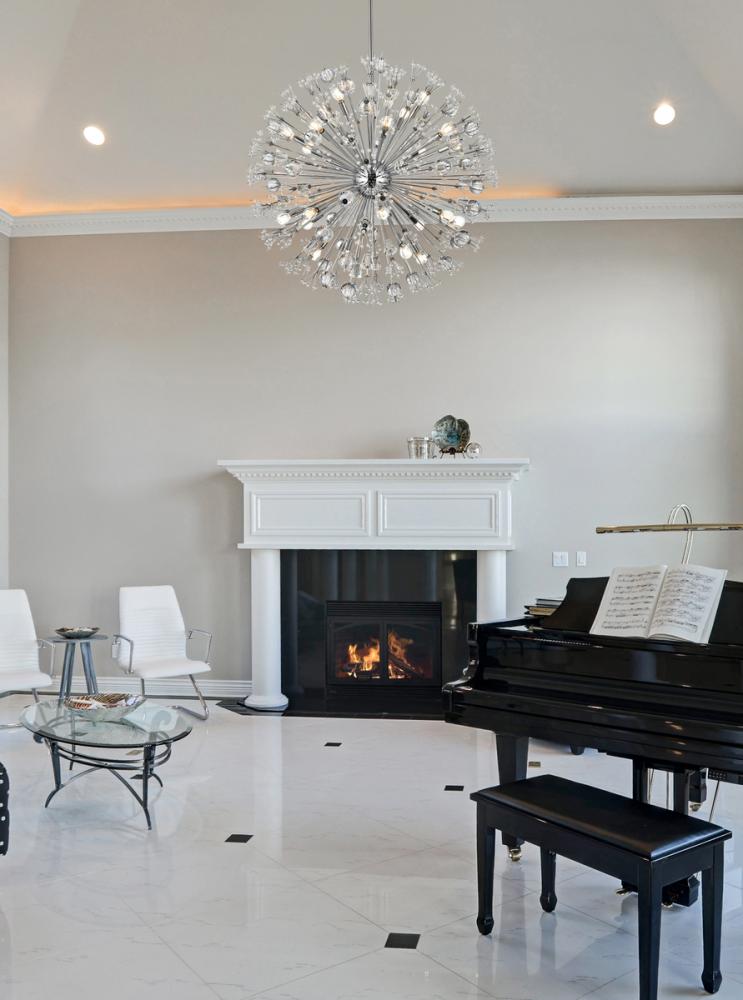 Vera 38 inch crystal starburst round pendant in chrome