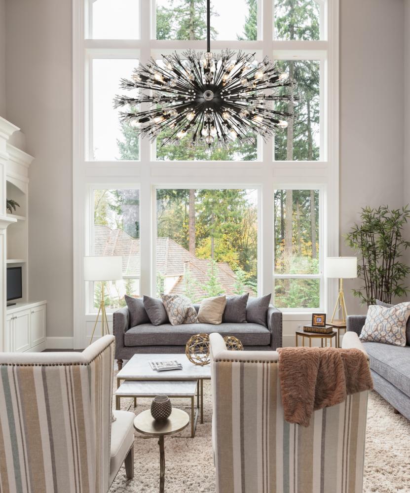 Vera 48 inch crystal starburst oval pendant in black