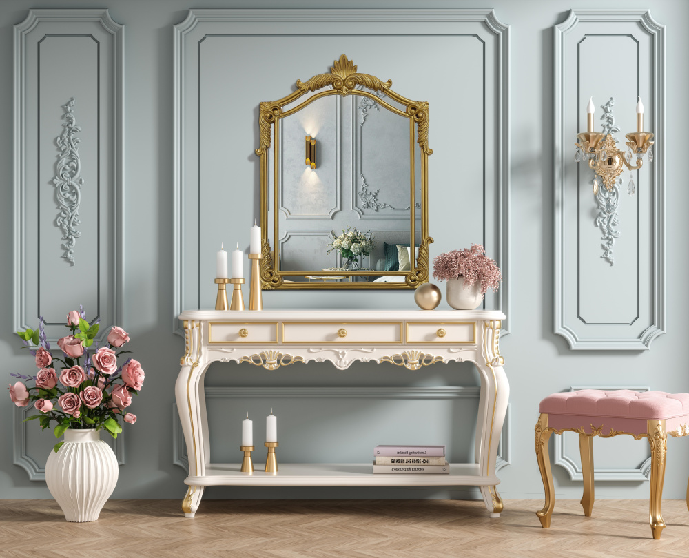 Whether placed in a living room, grand entryway, or above a vintage vanity, this mirror instantly enhances its surroundings with its regal presence.