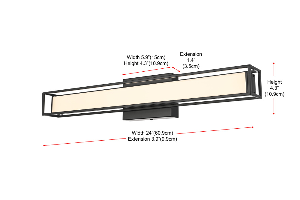 Transform your space with our sophisticated Linear LED Wall Sconce, where modern design meets exceptional functionality. This architectural masterpiece features a striking geometric frame that makes a bold statement while providing efficient, customizable illumination. The innovative tri-color temperature switch allows you to perfectly tune the ambiance from a warm, inviting glow to crisp, task-oriented lighting. With its versatile mounting options and premium iron and acrylic construction, this fixture seamlessly integrates into any contemporary setting. Whether illuminating your bathroom vanity or adding architectural interest to your hallway, the clean lines and professional-grade LED performance deliver both style and substance. The energy-efficient LED provides an impressive lumens through a carefully engineered acrylic diffuser, ensuring uniform, glare-free illumination. Available in multiple sizes and finishes, this hardwired fixture represents the perfect blend of form and function for the modern home or commercial space.