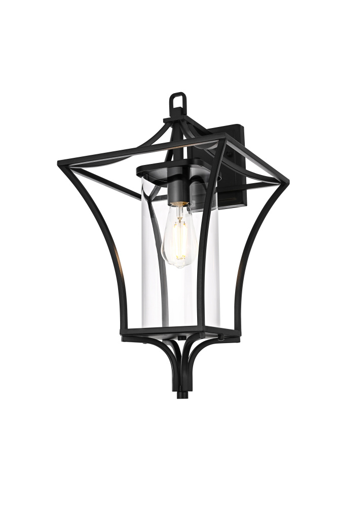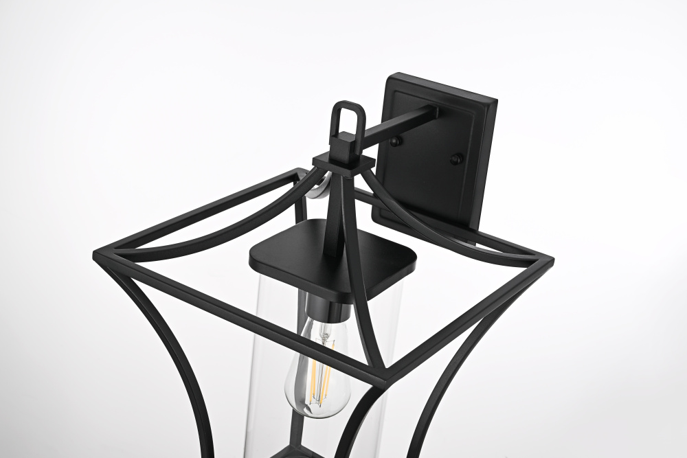 This outdoor wall sconce exudes timeless charm with its flowing curves and transparent glass tube, perfectly blending classic lantern styling with modern sensibilities. The frame, crafted from durable iron and complemented by a clear glass cylinder, ensures this piece stands out as a tasteful addition to any home's exterior. Its minimalist lines and elegant swooping shape provide a sophisticated look, making it a wonderful option for flanking doorways or illuminating pathways. Designed to withstand the elements, this sconce offers a durable, long-lasting lighting solution that enriches both safety and beauty for any outdoor space.