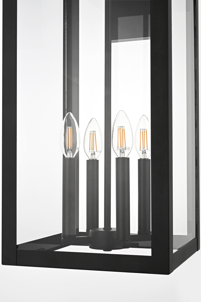 This modern outdoor wall sconce combines simplicity and functionality to enhance your home's exterior. Crafted with durable iron and crystal-clear glass panels, it brings a sleek and modern touch that will withstand the elements while delivering outstanding style. Its linear rectangular frame, paired with a timeless black finish, makes it the perfect addition for enhancing the architectural appeal of porches, entryways, or patios. The transparent glass panes give an uninterrupted view of the warm bulb, creating a welcoming ambiance for your outdoor spaces.
