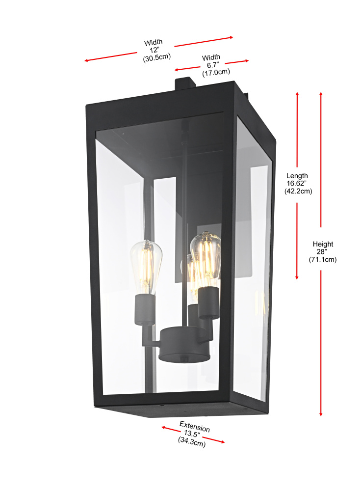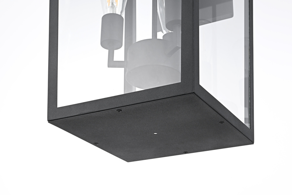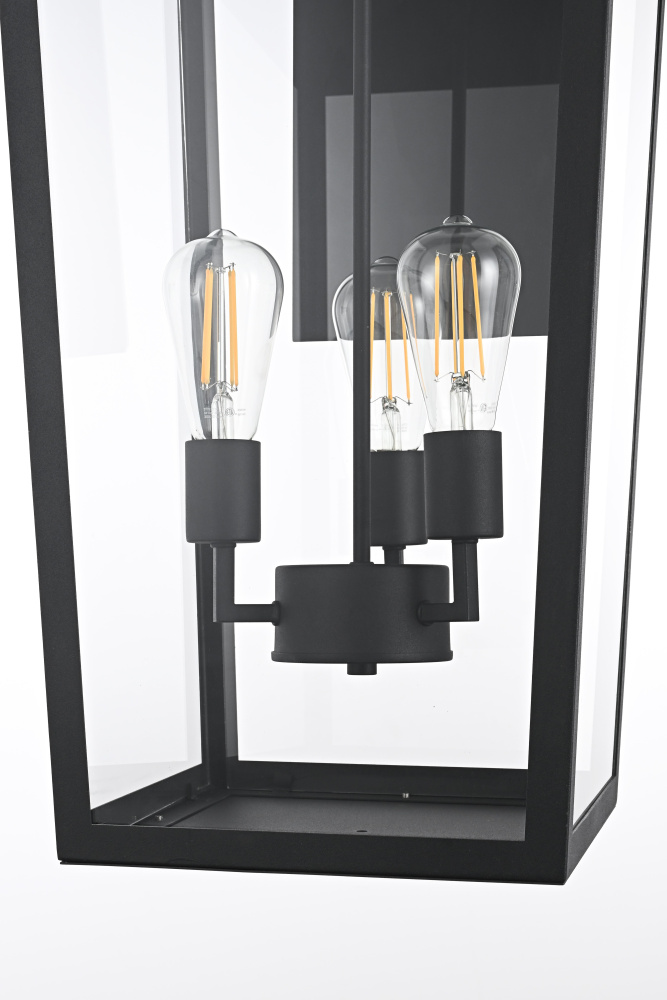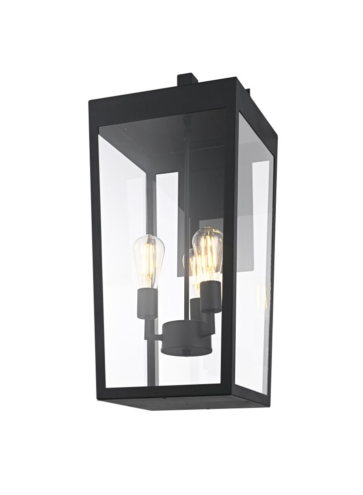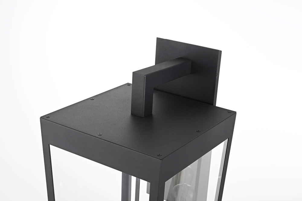 Elevate your outdoor lighting with this sleek, modern wall fixture, designed with a refined tapered silhouette and clear glass panels for an airy, sophisticated look. Constructed from durable iron with a floating mount detail, this fixture blends architectural precision with minimalist appeal. The enclosed bottom, secured with a metal plate, adds structural integrity while maintaining a streamlined, finished design. Featuring three standard E26 socket (bulb not included), this light allows for customization in brightness and style. Wet rated for durability against outdoor elements, it is perfect for entryways, patios, and exterior walls. The matte black finish enhances its bold frame, making it a striking statement piece that seamlessly balances form and function.