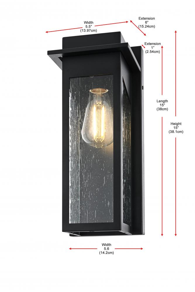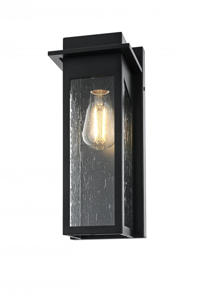 This outdoor wall sconce boasts a stunning combination of iron and seeded glass to create a modern and timeless appeal for your home's exterior. The sturdy iron frame envelops clear, textured glass panels, giving off a warm and inviting glow. The geometric pattern adds visual interest and sophistication, while the E26 socket allows you to pair it with a vintage-style bulb for that perfect accent lighting. This light effortlessly blends with a variety of styles, enhancing the charm of any outdoor space—from porches and patios to entryways. It’s the perfect piece to transform your exterior with a soft, ambient glow while showcasing an eye-catching architectural silhouette.