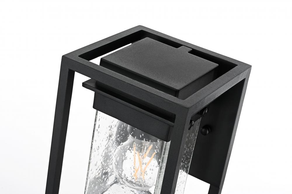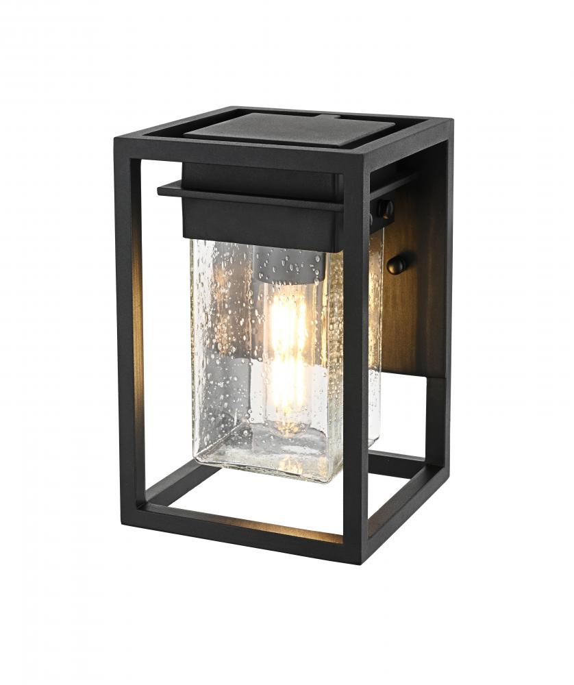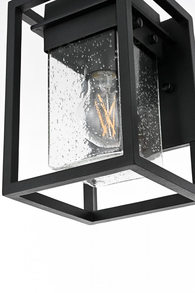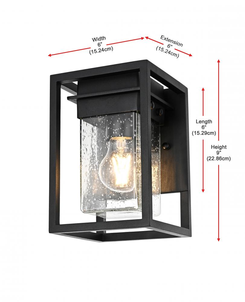 This striking outdoor wall sconce combines classic form with modern touches, crafted from sturdy aluminum and clear glass panels to create a sophisticated, timeless look for your outdoor space. The E26 socket offers a versatile bulb choice, while the geometric rectangular design draws attention to the beauty of its bold, open frame. The clean lines of the sleek aluminum structure perfectly frame the warm glow emanating from within, providing both aesthetic appeal and functional illumination. Whether flanking your front door, brightening your backyard patio, or lining your porch, this outdoor wall sconce will add style and a welcoming glow to any setting.