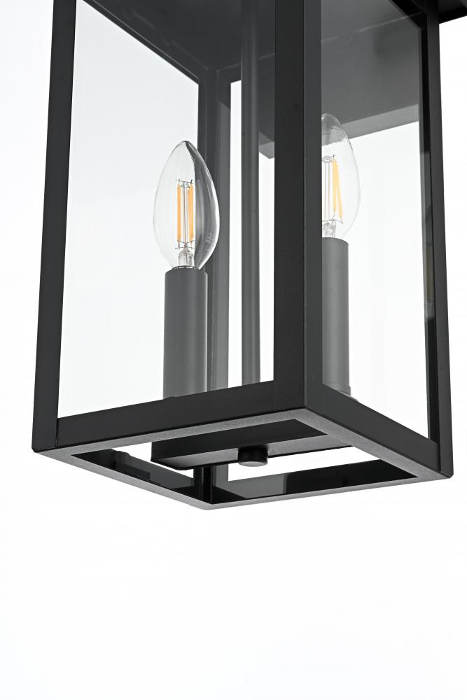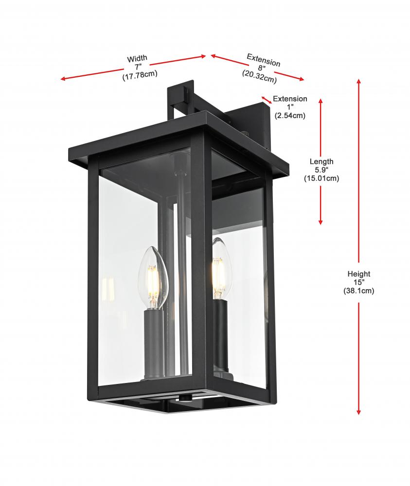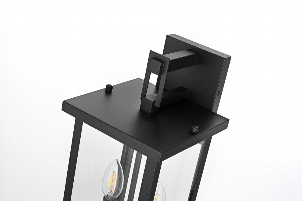 This modern outdoor wall sconce combines simplicity and functionality to enhance your home's exterior. Crafted with durable iron and crystal-clear glass panels, it brings a sleek and modern touch that will withstand the elements while delivering outstanding style. Its linear rectangular frame, paired with a timeless black finish, makes it the perfect addition for enhancing the architectural appeal of porches, entryways, or patios. The transparent glass panes give an uninterrupted view of the warm bulb, creating a welcoming ambiance for your outdoor spaces.