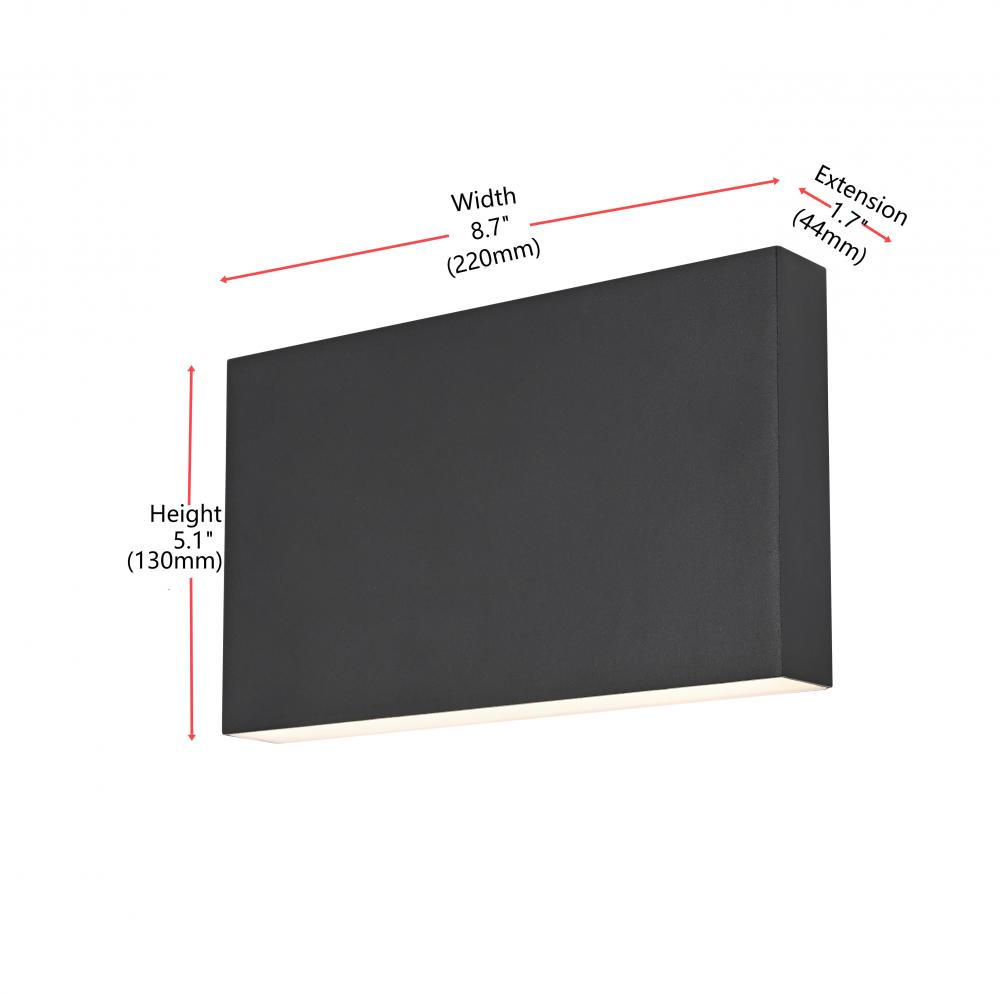Bring a bold and contemporary flair to your outdoor spaces with this ultra-modern LED wall light. Crafted from sturdy aluminum, its sleek rectangle design with rounded edges creates a minimalist yet eye-catching aesthetic. The integrated 8.5W LED shines both upwards and downwards, delivering 413 lumens that creates a stunning wall-washing effect. Why settle for one color temperature? Adapt your lighting to your lifestyle with our cycling LED innovation. Ideal for entryways, patios, or architectural accent lighting, this weather-resistant fixture combines style and functionality to elevate your exterior design. Its matte black finish ensures it fits beautifully into any modern outdoor setting.