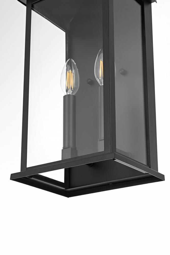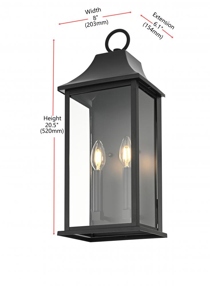 Transform your outdoor spaces with this distinctive wall lantern, where vintage-inspired design meets modern craftsmanship. Built from sturdy iron and softened with frosted glass, this piece blends clean rectangular lines with a gently curved cap and decorative ring. The double vintage-style bulb (bulb is not provided) casts a warm, soothing glow, ideal for creating a welcoming atmosphere. Finished in a versatile matte black, this weather-resistant lantern is as practical as it is stylish—perfect for adding character to patios, entryways, or garden paths.