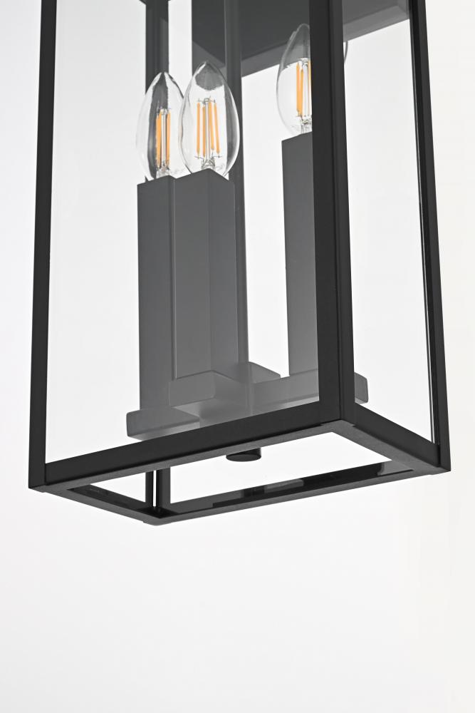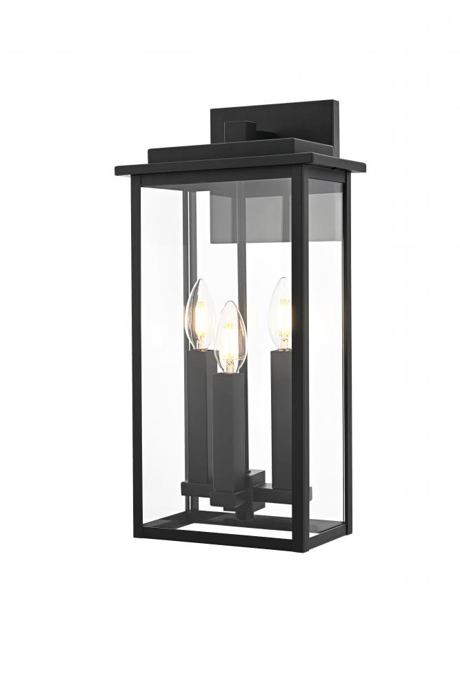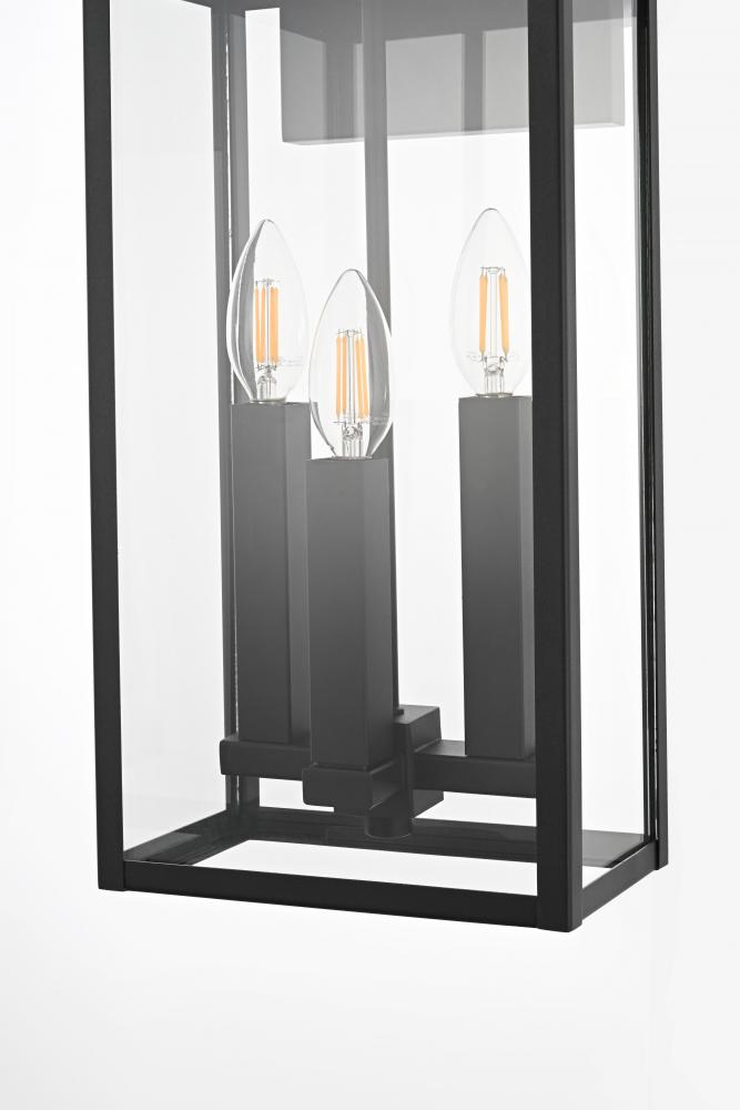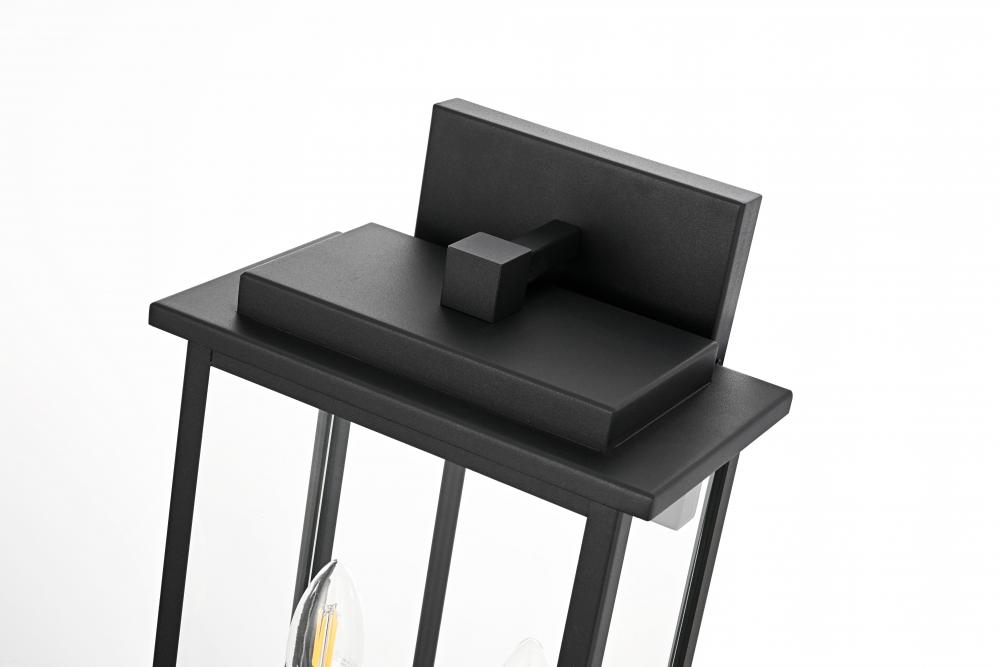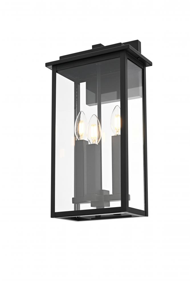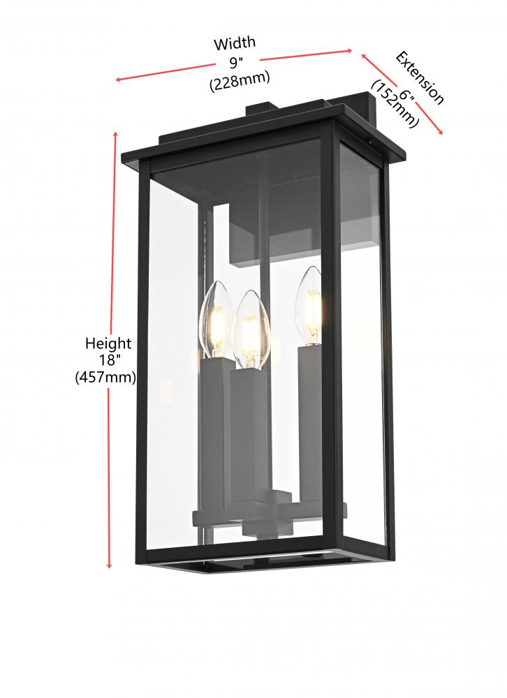 Enhance the curb appeal of your home with this contemporary outdoor wall light, featuring a bold triple-bulb design encased within a modern rectangular frame. Made from high-quality iron with clear glass panels, this fixture effortlessly combines form and function, providing an inviting glow while standing up to outdoor elements. Its wet-rated certification ensures it's suitable for any outdoor location, from exposed porches to sheltered patios. The minimalist backplate and open-bottom design make installation and maintenance easy, allowing for quick bulb changes. Equipped with E12 sockets, this wall light gives you the freedom to select the ideal bulbs to achieve your desired atmosphere. with its sleek style and practical features, this outdoor wall light is the perfect addition to your entryway, patio, or any exterior space looking for a modern upgrade.
