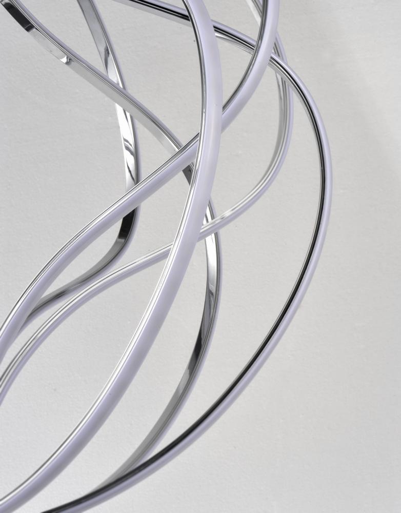A sculpture of durable steel and aluminum channel is gracefully formed with offsetting waves of motion. This collection is fully dimmable for a great combination of form and function.