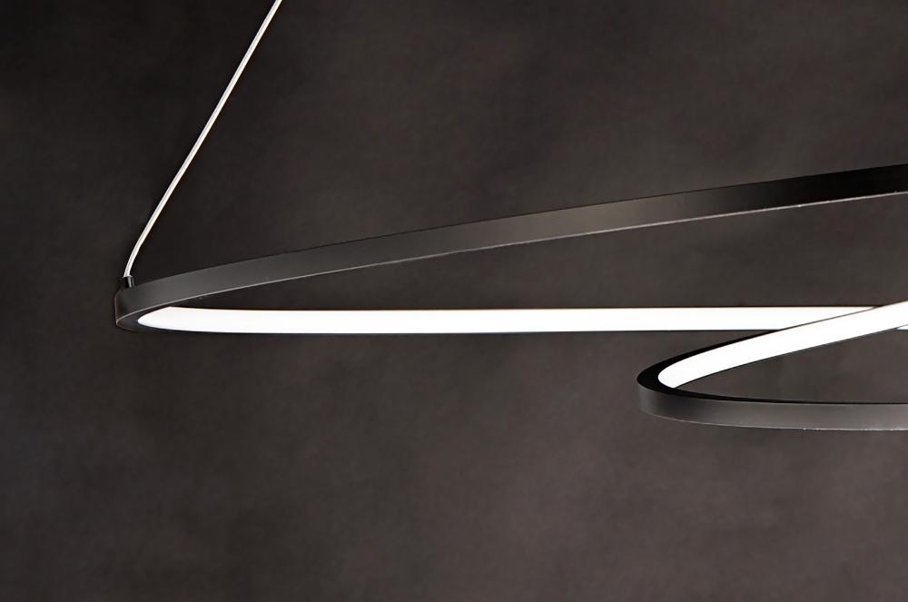 This playful design of a continuous channel spiraling from the canopy to create unique lighting sculptures. LED mounted inside the channel provides ample illumination with an indirect effect.