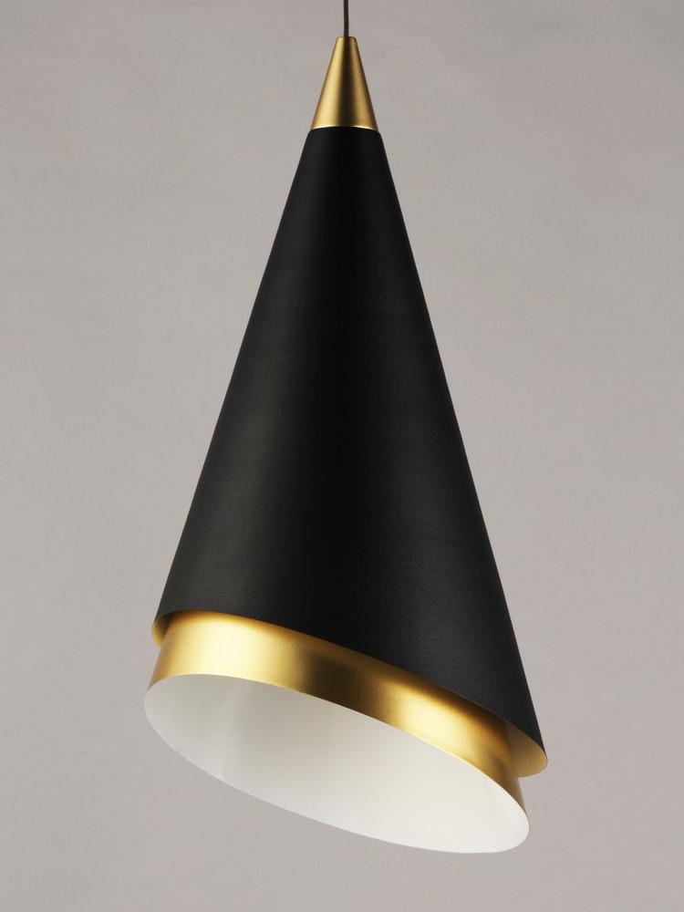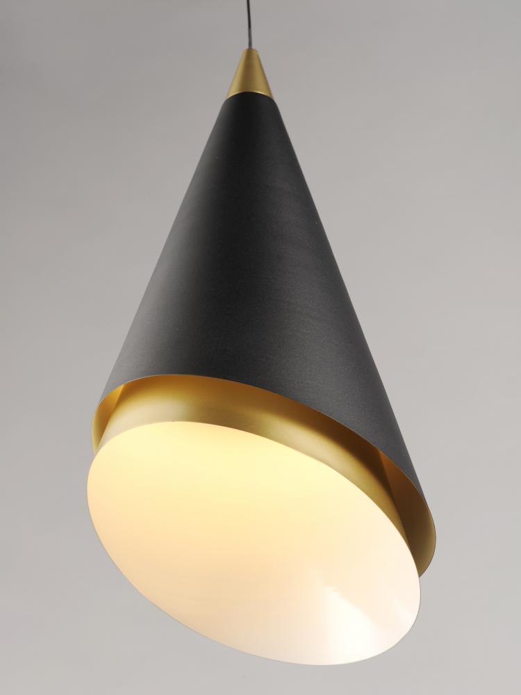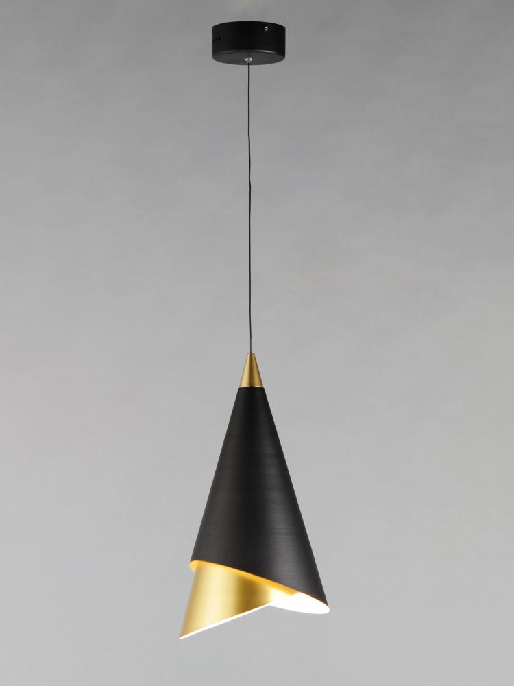This unique collection features pendants constructed of two separate pieces inserted into each other. The Matte Black outer shade is bevel cut in an opposing direction of the inner Metallic Gold shade. The inner shade can rotate to give a different look an