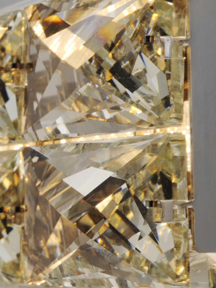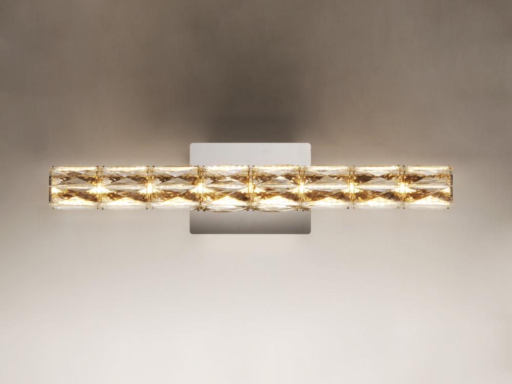 Rectangular Beveled Crystals are banded together to form soft square cylinders which are illuminated by LED that creates a brilliant lighting effect. Some items include metal chassis of Black which frame the crystal for a beautiful silhouette.