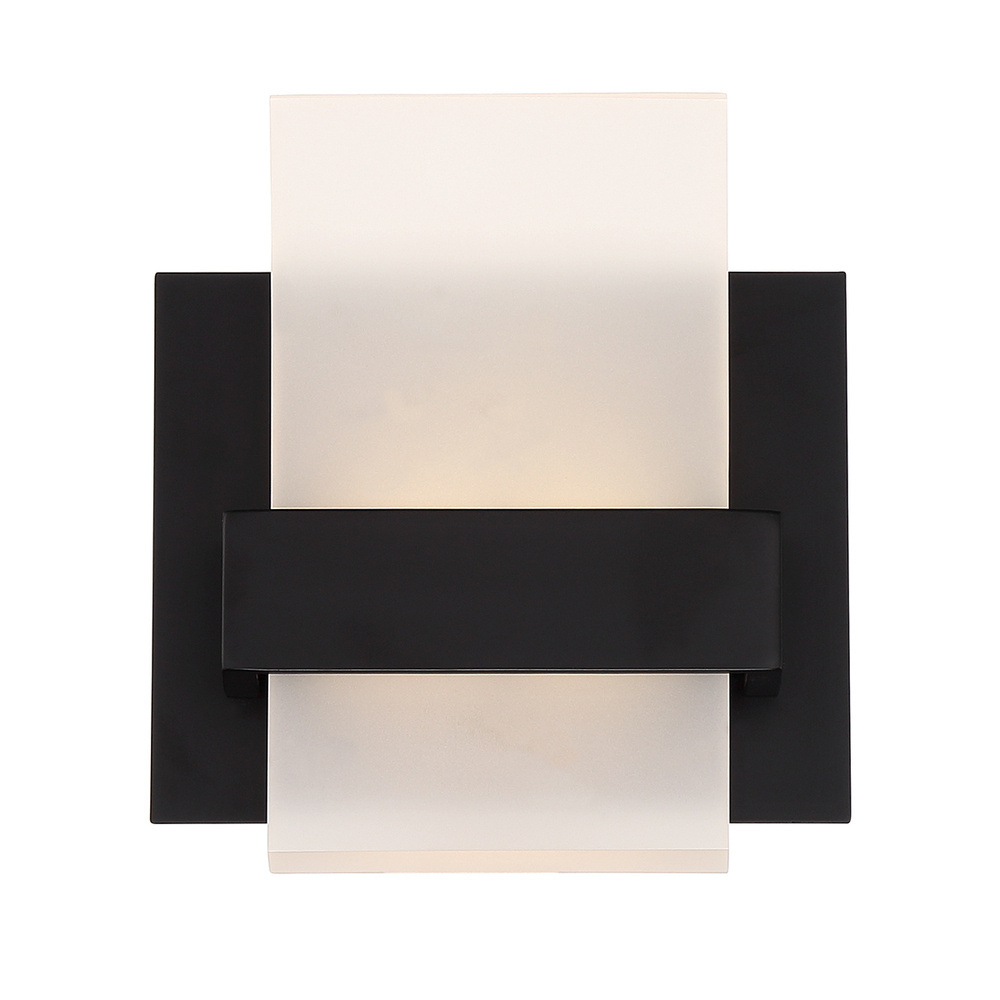 A frosted acrylic prism is nestled in a chrome frame structure exuberating modern excellence. A strong architectural form is accentuated by the strong lines in its design.