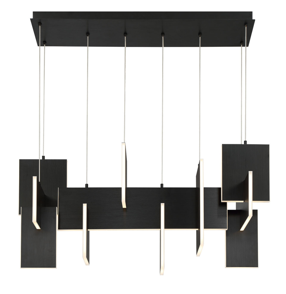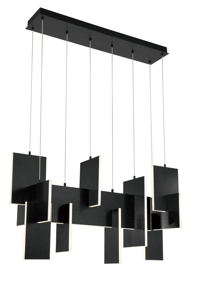 Slim, edge-lit LED panels are creatively positioned to intersect in a dynamic, whimsically modern design. A continuous run of LED lights delivers seamless, multi-directional lighting. The interlocking aluminum panels are laser cut for added precision and anodized to create a durable, corrosion-resistant finish that’s available in either gold or black.