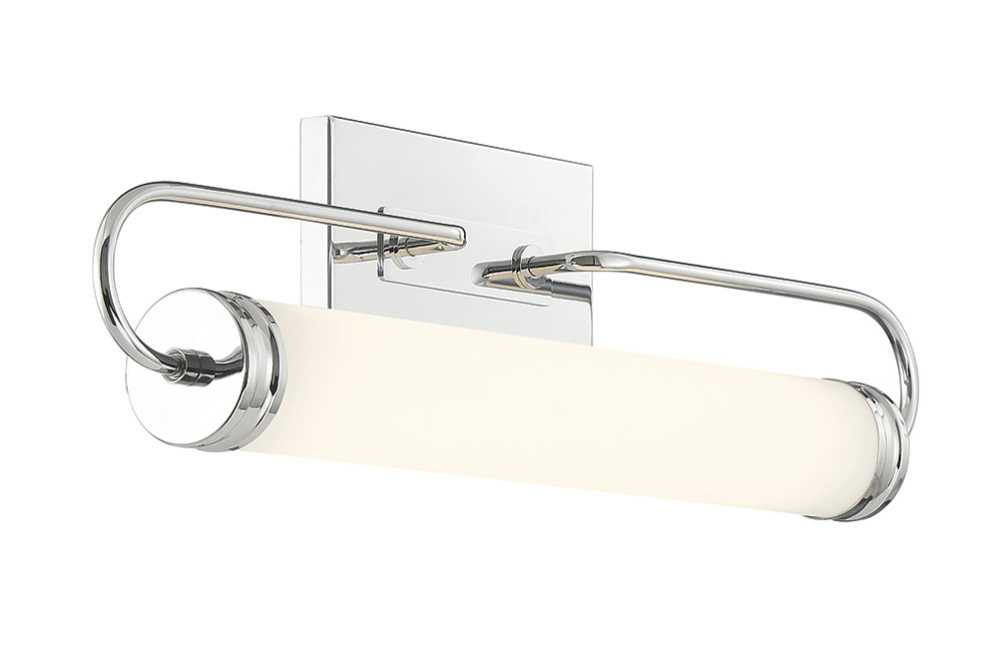 Soft-diffused lighting is presented via a frosted white roll of glass finished with a stepped cap on each end and suspended between embracing racetrack arms. The comfortable illumination whether installed horizontally or vertically will compliment lifestyle settings from contemporary to traditional