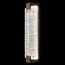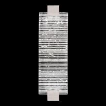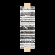 Indoor/outdoor aluminum sconce features a three-dimensional contrast of deep textured and polished cast glass. This stunning landscape of the glass, illuminated by waterproof LEDs, is available in clear (shown) or highlighted with antiqued gold leaf. Choice of three finishes, champagne tinted gold leaf finish or silver leaf for indoor only, and a hand rubbed black iron for indoor and outdoor use.