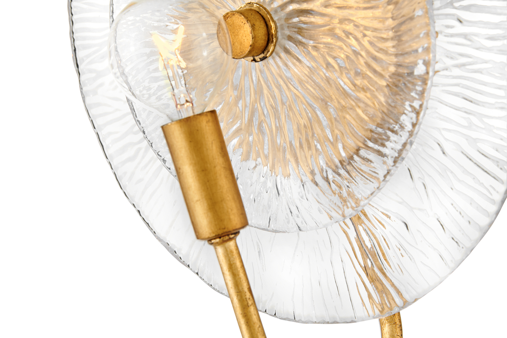 Rene radiates light through multiple layers of beautiful, pressed glass disks. Rene’s signature touch highlights a Distressed Brass finish, evoking both transitional and glam influences.