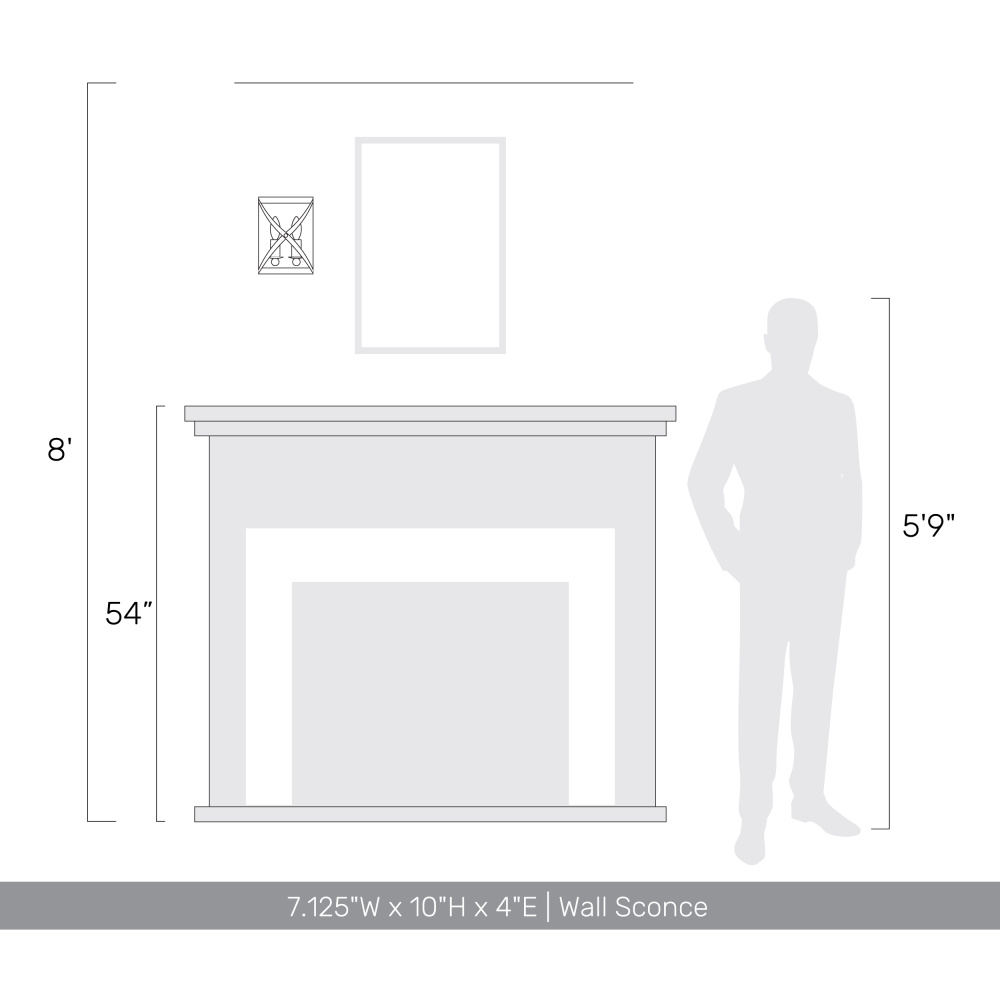Bring rustic farmhouse elegance into your home with the Golden Lighting Alcott 2-light Wall Sconce. Featuring a rugged antique black iron frame, it creates a welcoming atmosphere. With its unique design, the sconce allows light to flow freely, adding to the cozy ambiance of your space. The Antique Black Iron finish captures the raw, authentic charm of a bygone era, showcasing a bold layer that is artfully weathered, revealing glimpses of a warm, antiqued gold base beneath. Versatile for various applications, this sconce enhances hallways, stairways, and bathrooms—perfect for creating inviting atmospheres in bedrooms, dining rooms, and entry points. It is damp location rated, suitable for covered and semi-enclosed spaces with occasional moisture. Overall dimensions measure 7.13"W x 10"H x 4"D, requiring 2 E12 Candelabra base bulbs (not included) with a maximum wattage of 60 per bulb. Elevate your decor with the artisanal craftsmanship of the Golden Lighting Alcott sconce, a piece that resonates with rustic heritage and cozy authenticity.