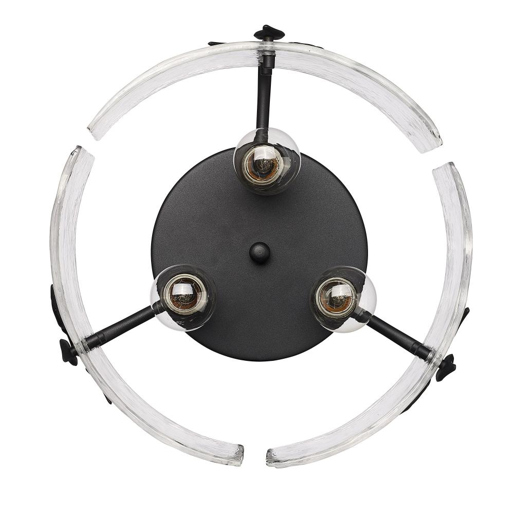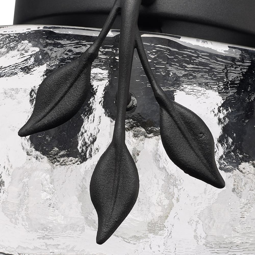 Bring nature-inspired elegance into your home with the Golden Lighting Calla 3-light Flush Mount in Natural Black. Featuring a hammered water glass shade and a Natural Black finish, it creates an inviting atmosphere. The hammered water glass shade offers a unique, textured surface that beautifully refracts light, enhancing the overall ambient glow. The Natural Black finish brings a softer, organic feel, making it an ideal choice for a variety of styles from industrial to farmhouse. Perfect for low ceilings and compact spaces, it is suitable for hallways, closets, bathrooms, and more. Damp Location Rated, this fixture is safe for covered and semi-enclosed areas with occasional moisture. It requires 3 E26 Medium base bulbs (not included) with a maximum wattage of 100 per bulb. Overall dimensions are 15.13"W x 7"H x 15.13"D. With its exquisite craftsmanship and design, this flush mount will elevate the ambiance of your space.