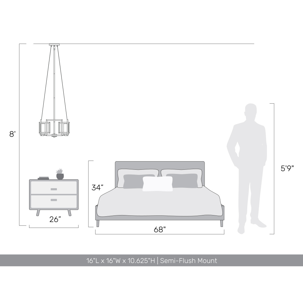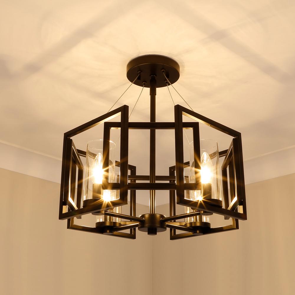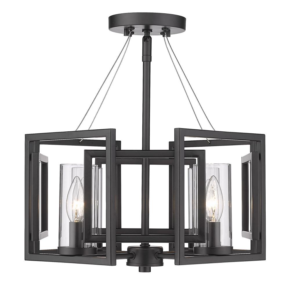 Refresh your home's ambiance with the Golden Lighting Marco 4-light Semi-Flush Mount. Featuring a glass shade and a sleek Matte Black frame, it creates an atmospheric glow that invites warmth into your space. The clear glass shade ensures brilliant light diffusion, highlighting the bulb and the refined design of the fixture. Its polished surface enhances light output, adding a contemporary elegance to your surroundings. The Matte Black finish is clean and modern, providing a timeless foundation that suits a variety of decor styles, from minimalist to bold and contemporary. This semi-flush mount is perfect for entryways, bedrooms, kitchens, and living areas with mid-height ceilings. It is Damp Location Rated, suitable for covered and semi-enclosed spaces with occasional moisture. The adjustable height feature ensures versatility for both sloped and flat ceilings. Overall Dimensions: 16"W x 10.63"H x 16"D. Requires 4 E12 Candelabra base bulbs (not included) with a maximum wattage of 60 per bulb. Bring exceptional quality and distinct style to your home with this stunning lighting fixture, designed to enrich your living environment.