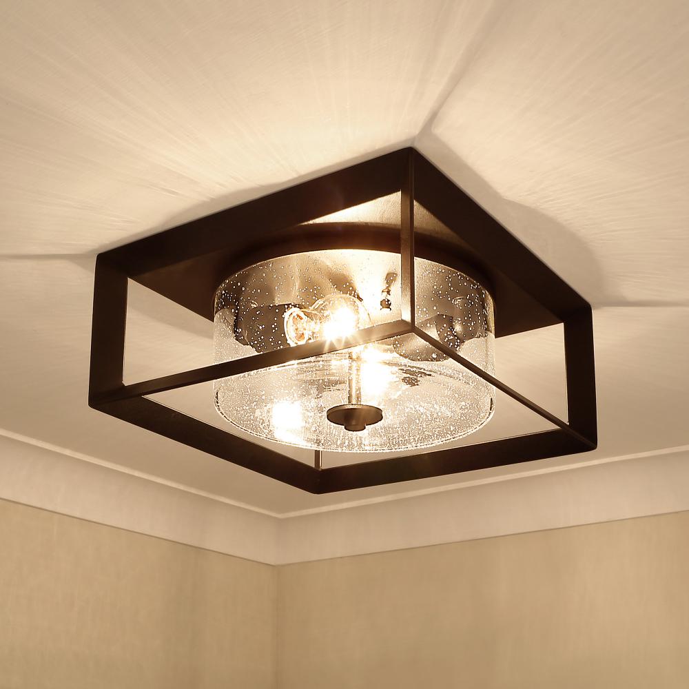 Bring timeless elegance into your outdoors with the Golden Lighting Smyth 2-light Outdoor Ceiling. Featuring a glass shade and a Natural Black frame, it creates a welcoming atmosphere for your porch or gazebo. The Seeded Glass shade is infused with tiny air bubbles that create a unique, vintage-inspired texture. It adds a touch of charm, gently diffusing light for an inviting ambiance. The Natural Black finish offers a softer look that complements various styles from modern to traditional, ensuring versatility in design. Designed for wet locations to withstand the elements, this fixture is perfect for uncovered outdoor areas. It requires 2 E26 Medium base bulbs (not included), max 60 watts, and measures 13.25"W x 5.88"H x 13.25"D. Elevate your outdoor decor with enduring quality and style.
