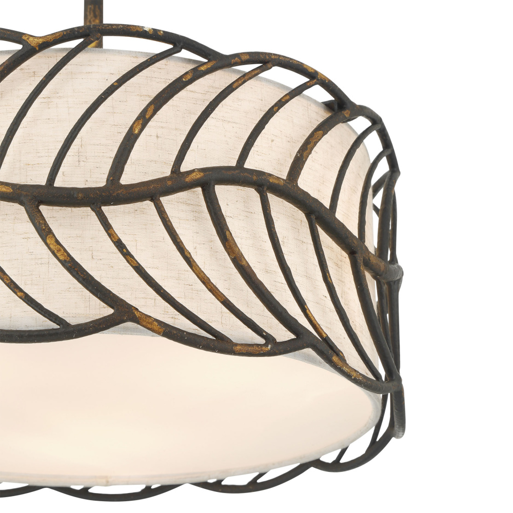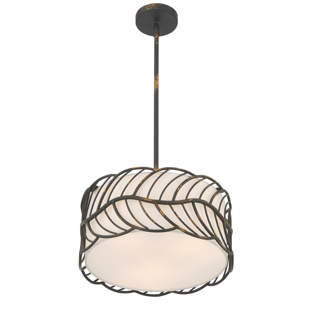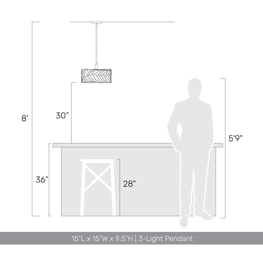 Bring Farmhouse elegance into your home with the Wry Lighting Simbolo 3-light Pendant in Antique Black Iron. Featuring an Ivory Linen fabric shade and a rustic Antique Black Iron frame, it creates a welcoming atmosphere. The Ivory Linen shade diffuses soft light, adding an inviting glow to any setting. Capture the raw, authentic charm of a bygone era with our Antique Black Iron finish, showcasing a richly textured surface that mimics weathered iron, adding vintage appeal to your decor. This versatile pendant adds a stylish statement to kitchens, dining rooms, or bedrooms — perfect for focused yet decorative illumination in entryways, foyers, and bathrooms. It is Dry Location Rated, ideal for indoor spaces not subject to moisture. Overall Dimensions: 15"W x 9.5"H x 15"D. Requires 3 E26 Medium base bulbs (not included), max 60 wattage per bulb. Elevate your interior with stunning craftsmanship that celebrates the beauty of nature and quality lighting.