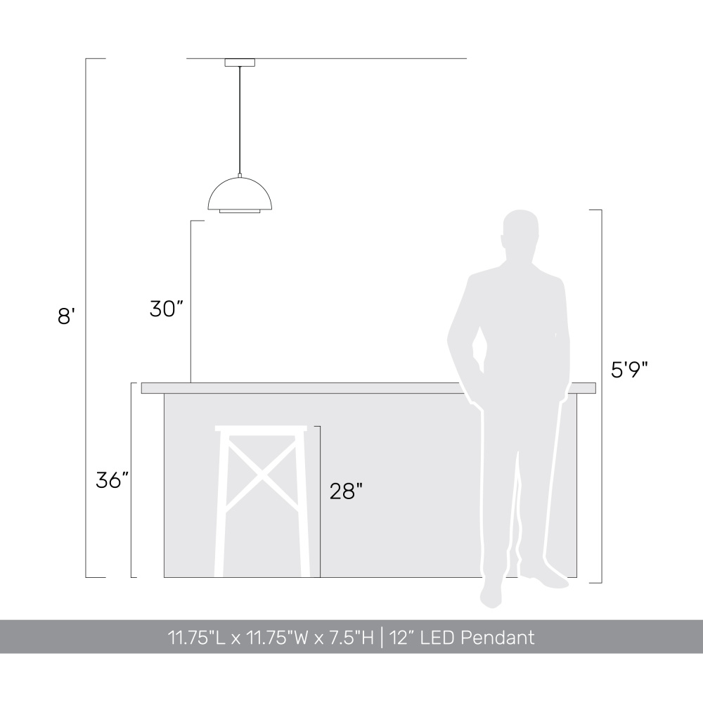 Bring modern elegance into your home with the Wry Lighting Solsken Integrated LED 12in Pendant in Sand Black. Featuring a metal shade and a Sand Black frame, it creates a welcoming atmosphere. The metal shade enhances the light with an Aged Copper accent that beautifully captures and diffuses light, creating a cozy ambiance. This elegant accent glows with a rich luster, adding a touch of modern warmth to your decor. The Sand Black finish offers a sophisticated and textural appeal with its deep, solid black hue and non-reflective matte surface, adding practicality and high-end style to your home. Perfect for kitchens, dining rooms, and bedrooms, this fixture is Damp Location Rated, making it suitable for covered and semi-enclosed spaces like bathrooms and porches. It is also Sloped-Ceiling Compatible and features an Adjustable Height ranging from 17" to 120". Overall Dimensions: 11.75"W x 7.5"H x 11.75"D. Integrated LED technology provides 688 rated lumens at a warm 3000K CCT, ensuring brilliant, energy-efficient illumination. Elevate your space with the quality and stylish appeal of this fixture from Wry Lighting.