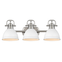 Bring farmhouse elegance into your home with the Yep by Golden Lighting Duncan 3-light Vanity. Featuring a metal shade and a chrome frame, it creates a welcoming atmosphere. This metal shade boasts a glossy black finish, providing a dramatic touch that beautifully reflects light. The brilliant Polished Chrome finish offers a crisp, clean look, effortlessly integrating into various decor styles from modern to traditional. Brighten up bathrooms with dedicated lighting that flatters while providing practical illumination. This fixture is damp location rated, suitable for covered spaces with occasional moisture like bathrooms or laundry rooms. Adjustable directional heads allow you to customize the lighting to highlight specific areas. Overall dimensions are 24.5"W x 8.5"H x 8.25"D and requires 3 E26 Medium base bulbs (not included), with a maximum wattage of 100 per bulb. Elevate your space with quality craftsmanship and stylish functionality.
