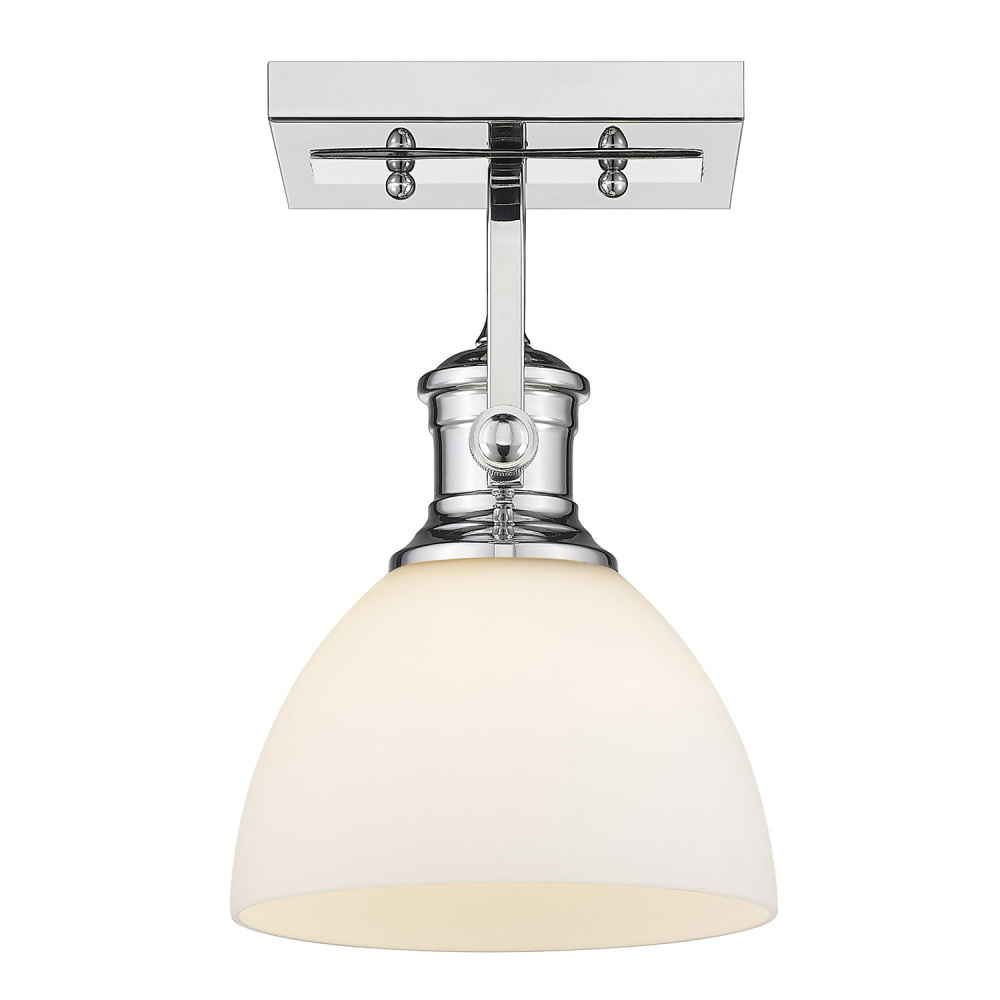 Bring vintage-inspired elegance into your home with the Yep by Golden Lighting Hines 1-light Vanity. Featuring a glass shade and a chrome frame, it creates a welcoming atmosphere. The opal glass shade diffuses light evenly for a soft, glare-free glow, offering a timeless and elegant touch to your decor. Brilliant and timeless, the polished chrome finish provides a stunning, high-shine gleam that is both sleek and sophisticated, seamlessly integrating into a wide range of styles from ultra-modern to classic traditional. Brighten up bathrooms with dedicated lighting that flatters while providing practical task illumination. The fixture is damp location rated, making it suitable for covered and semi-enclosed spaces with occasional moisture, like bathrooms and laundry rooms. Installation is simple, and you can customize the lighting direction with the adjustable directional heads. The overall dimensions are 6.88"W x 8.75"H x 8.25"D, and it requires 1 E26 medium base bulb (not included) with a maximum wattage of 60. Enhance your space with this beautiful fixture that combines charm and functionality.