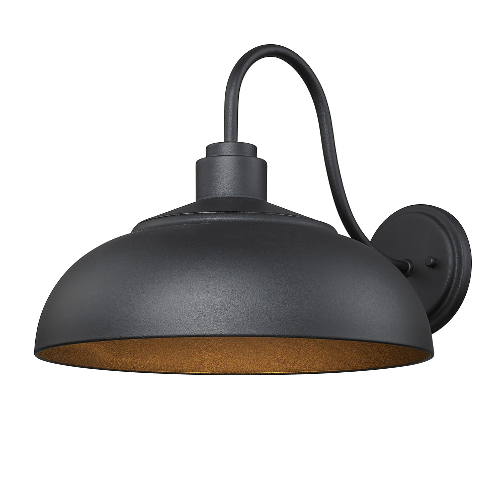Bring farmhouse elegance into your home with the Yep by Golden Lighting Levitt 1-light Outdoor Wall. Featuring a metal shade and a Natural Black frame, it creates a welcoming atmosphere. The metal shade comes in a Natural Black finish, featuring a flat matte sheen and a slightly granular texture, providing a warm and rustic light effect suitable for various outdoor settings. The Natural Black finish offers a softer, more organic take on a classic, reminiscent of raw, natural iron, making it versatile for modern farmhouse, industrial, and transitional designs. Functional and inviting at entryways, patios, and garage doors, this fixture is Wet Location Rated, designed to withstand direct exposure to rain and snow. It requires 1 E26 Medium base bulb (not included), with a maximum wattage of 100. Overall dimensions are 13.63"W x 11.63"H x 17.88"D. Complete your outdoor spaces with timeless charm and quality that endure the elements.