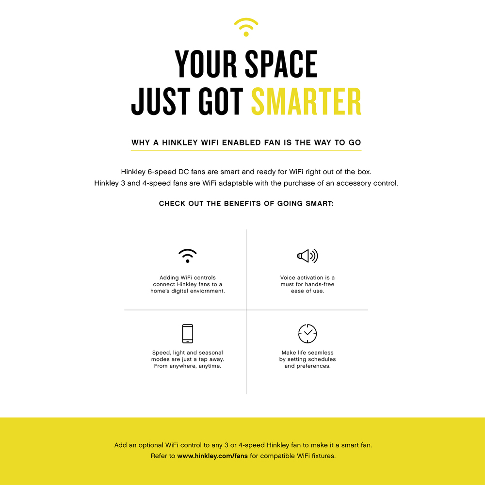 Modern and refined, Alta elevates transitional design styles throughout the home. Integrated LED and DC motor technology deliver excellent energy efficiency, suitable for both indoor and outdoor settings. Operated by the HIRO control or WiFi compatible with the Hinkley app.