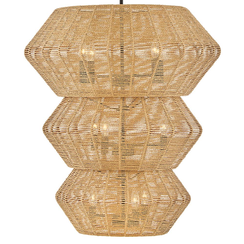 Luca's coastal vibe is permeated with an exotic appeal. The bold pendant showcases a robust, woven drum shade, and a fully finished cluster for plenty of functional light offered in a variety of finish options. Luca is part of the Lisa McDennon Collection.