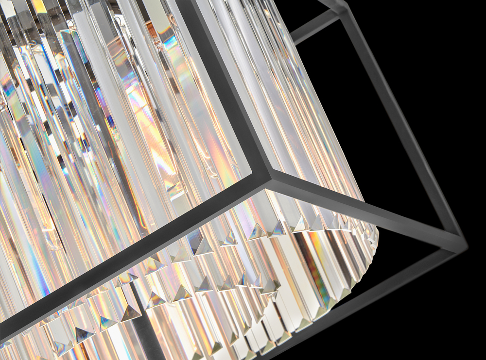 Giada is a contemporary chandelier collection with stunning crystal prisms set within a frame of Black to create a seamless, sparkling, jewelry-like effect.