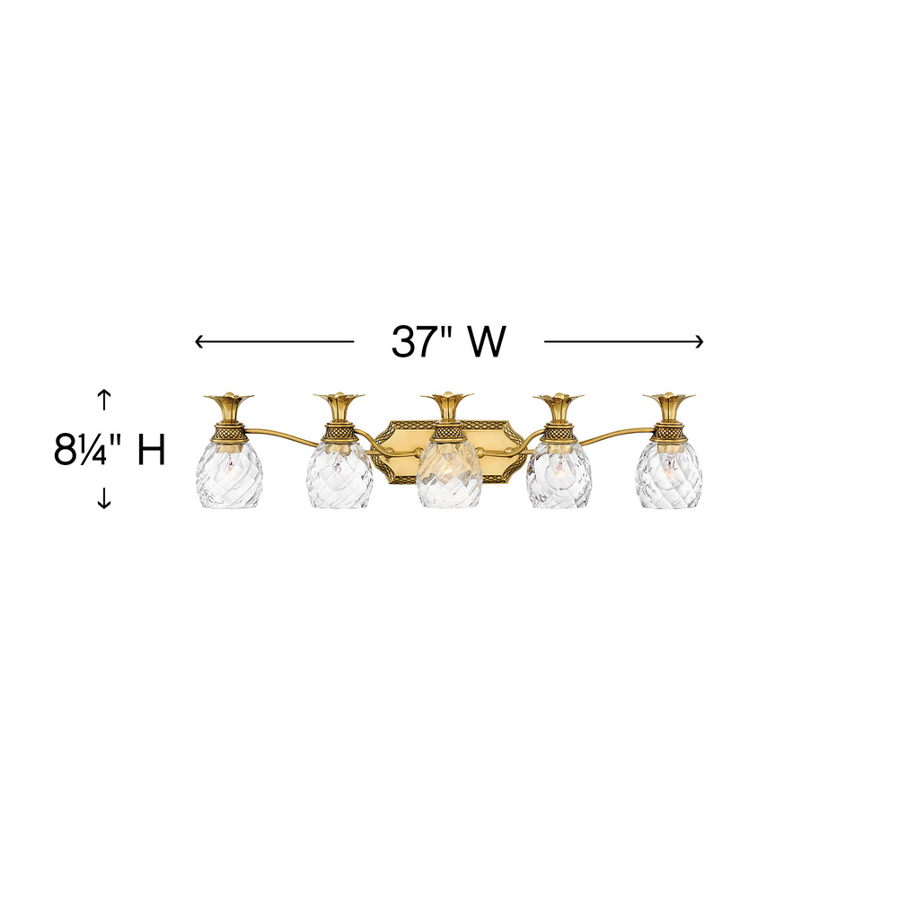 A Hinkley classic, the ornate Plantation collection features exceptional pineapple shaped, clear optic glass that makes a noble statement. The elaborate, decorative cast detailing is accentuated by its lush finish.