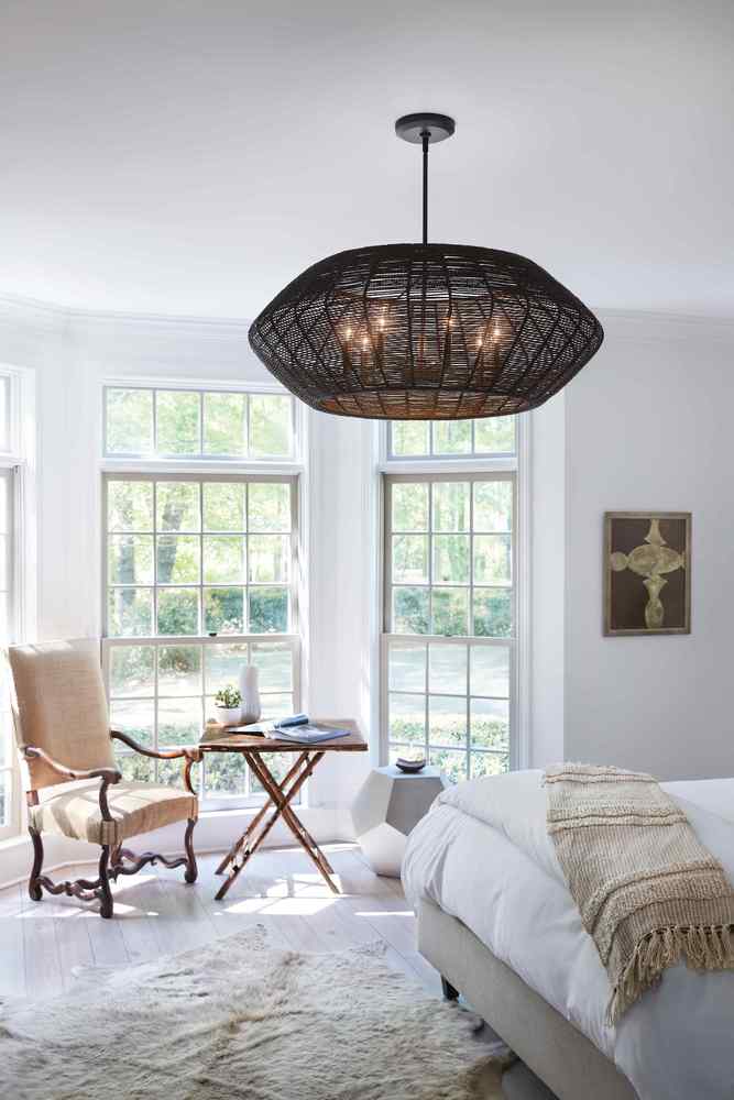Luca's coastal vibe is permeated with a slightly exotic edge. The bold pendant showcases a robust, woven drum shade, and a full finished cluster for plenty of functional light offered in a variety of finish options. Luca is part of the Lisa McDennon Collection.