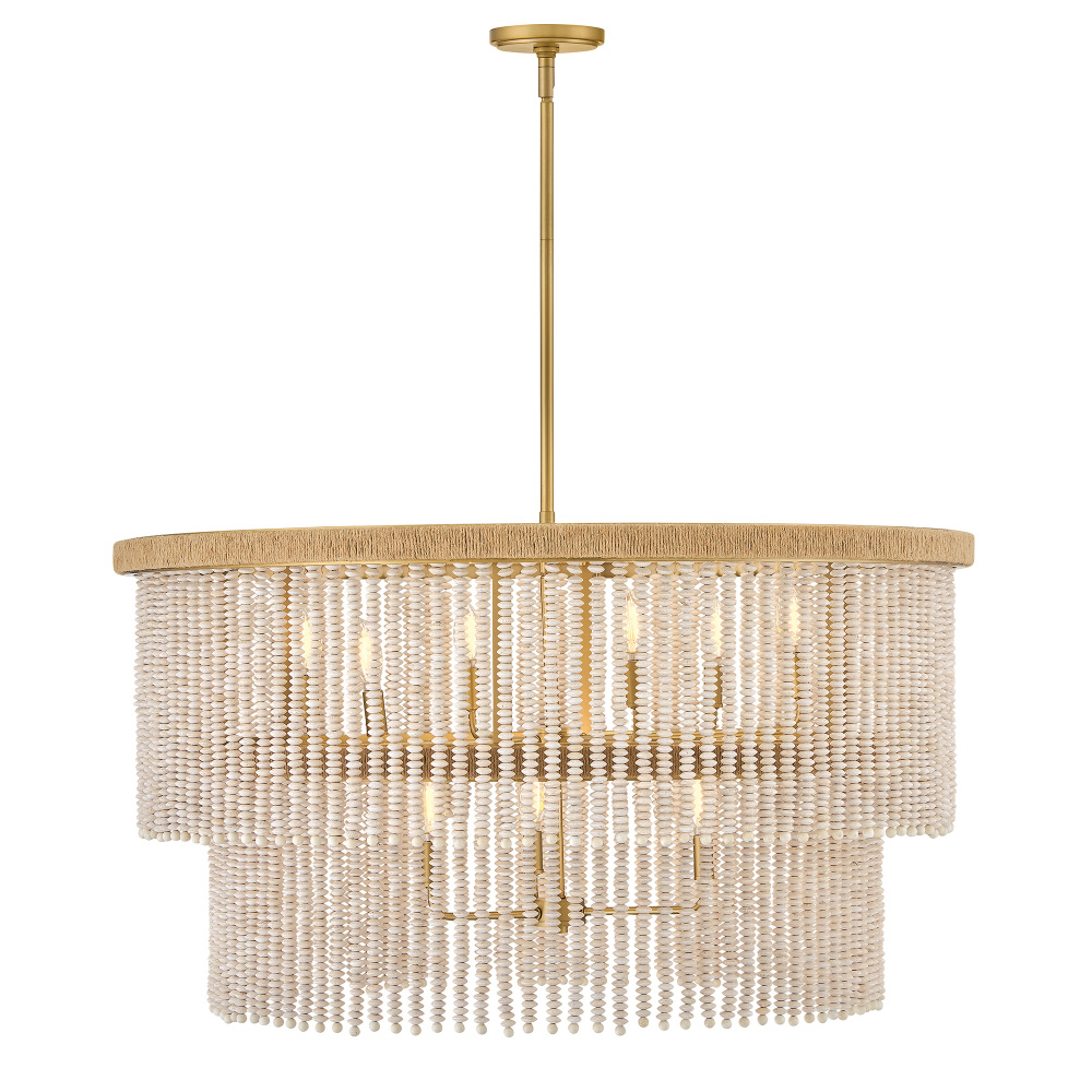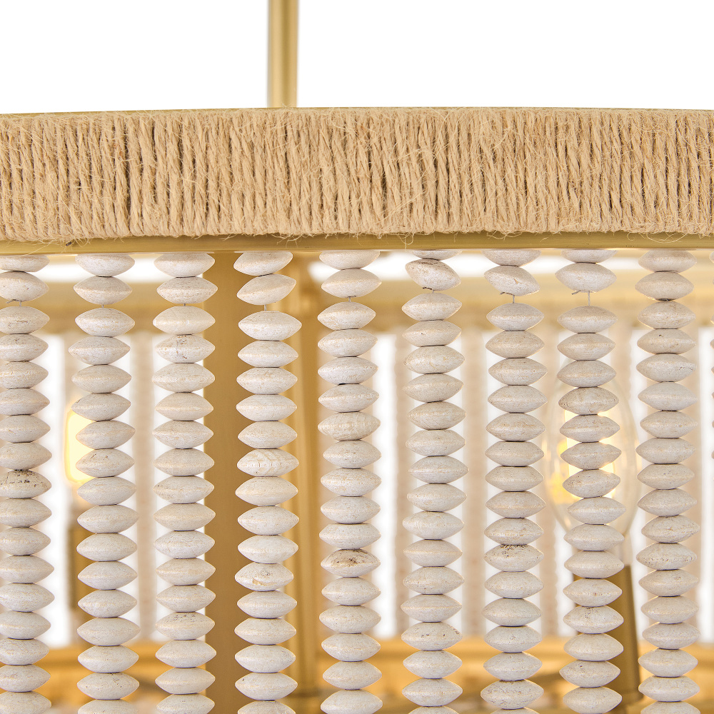 Indra blends coastal styling with an elegant transitional silhouette to fill your space with a naturally inspired atmosphere. A hand-strung curtain of stacked, taupe wooden beads diffuses warm illumination, while a frame hand-wrapped in natural fiber jute rope adds a touch of organic texture to your decor.