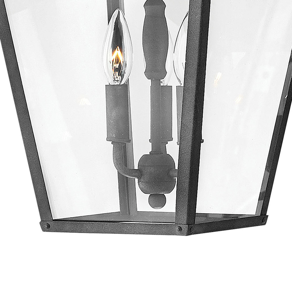 Trellis is a traditional European lantern design in an Aged Zinc finish with clear glass or Regency Bronze with clear seedy glass. The large scroll arm detail, cast loop finial and true rivet detail create a refined elegance.