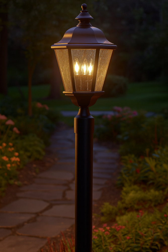 Edgewater’s classic design features a durable cast aluminum and brass construction in a rich Black finish with clear seedy glass.