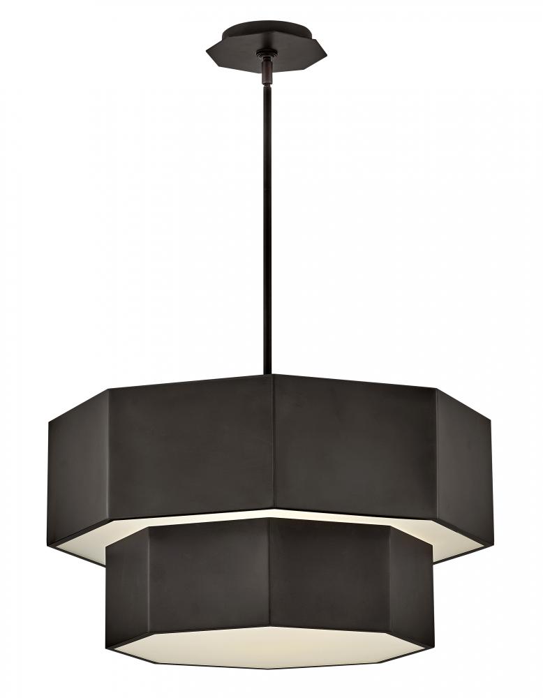 View the many sides of Facet. Interesting angles combine with bold metal features to create an edgy and contemporary profile that is unpretentious yet unforgettable. Hexagonal etched glass is showcased by Heritage Brass or Black Oxide finishes.
