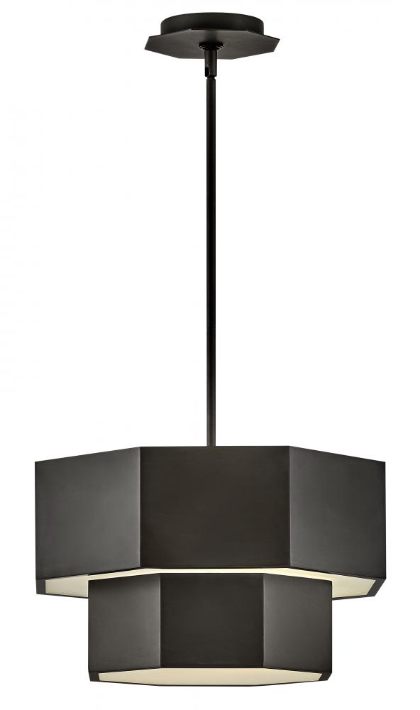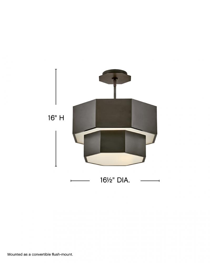 View the many sides of Facet. Interesting angles combine with bold metal features to create an edgy and contemporary profile that is unpretentious yet unforgettable. Hexagonal etched glass is showcased by Heritage Brass or Black Oxide finishes.