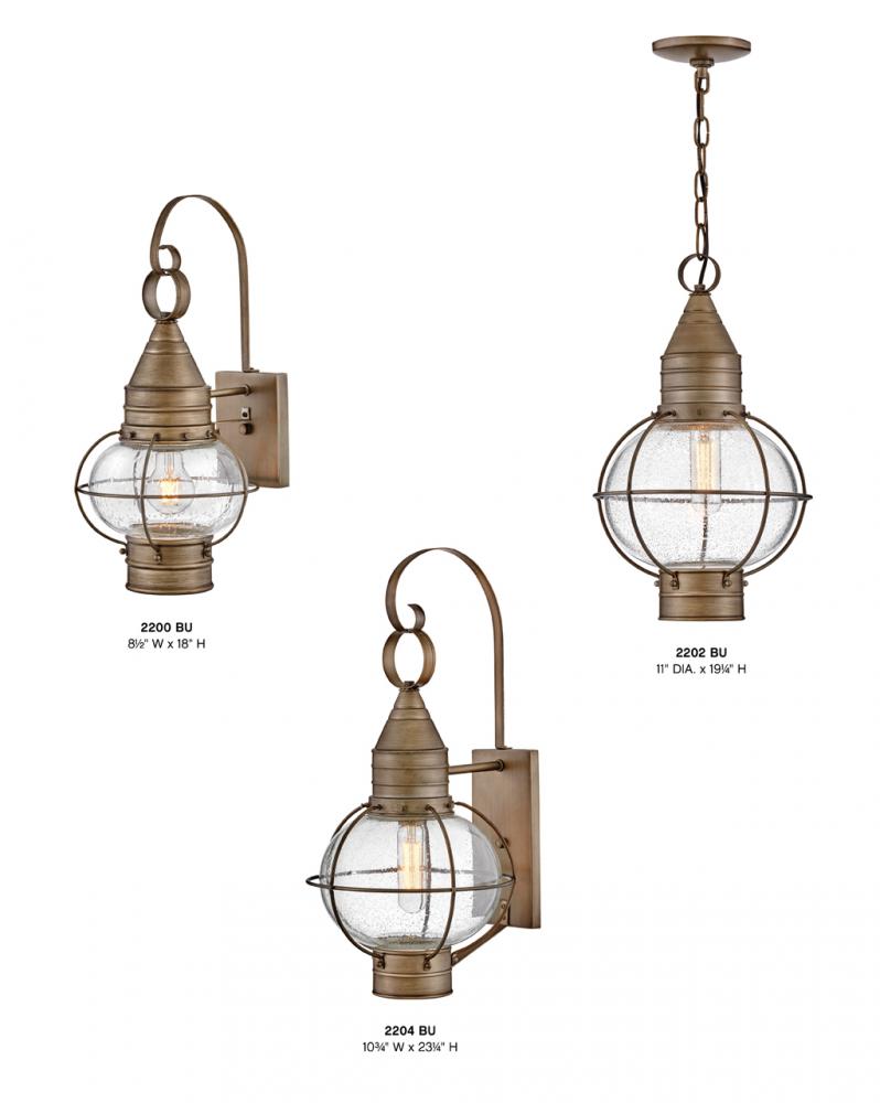 Cape Cod’s classic onion lantern design conveys New England style. Bold caged lines highlight the sturdy profile, while the clear seedy glass adds to the vintage appeal.