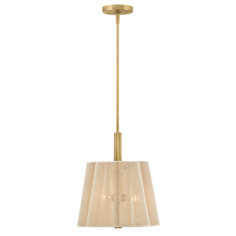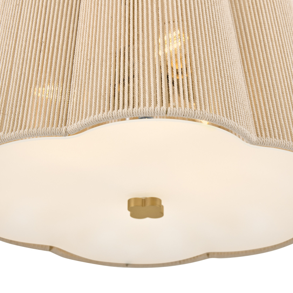 A chic yet casual decor statement infused with natural texture, Sasha’s subtly tapered, scalloped shade is hand-wrapped in natural-fiber cord, imparting an unexpected element of sheer softness to your decor. A clover-shaped Etched glass diffuser glows with welcoming illumination, secured by a complementing clover finial and a frame finished in Lacquered Brass.