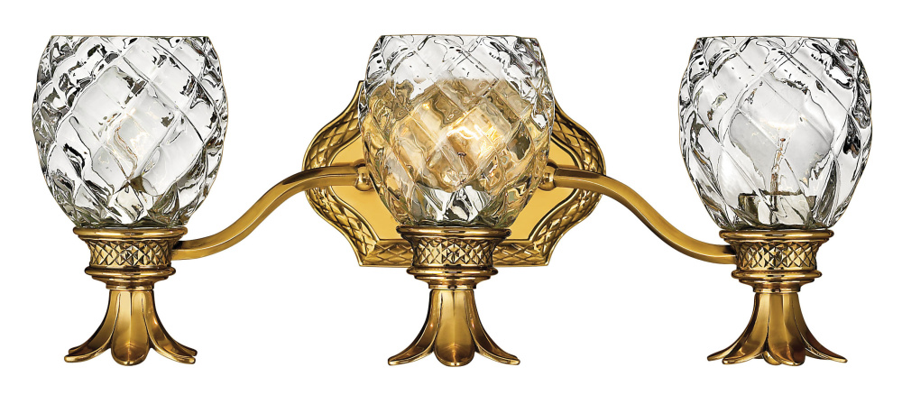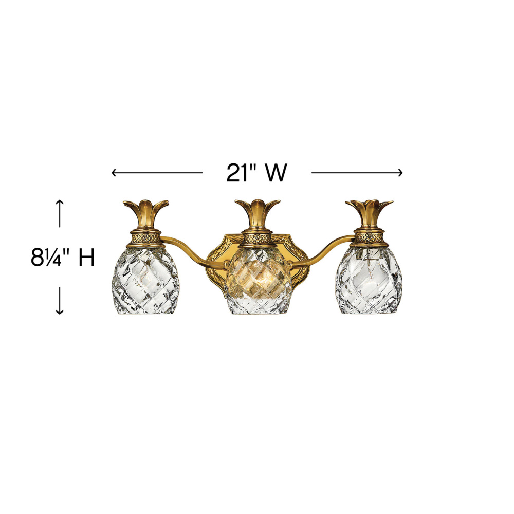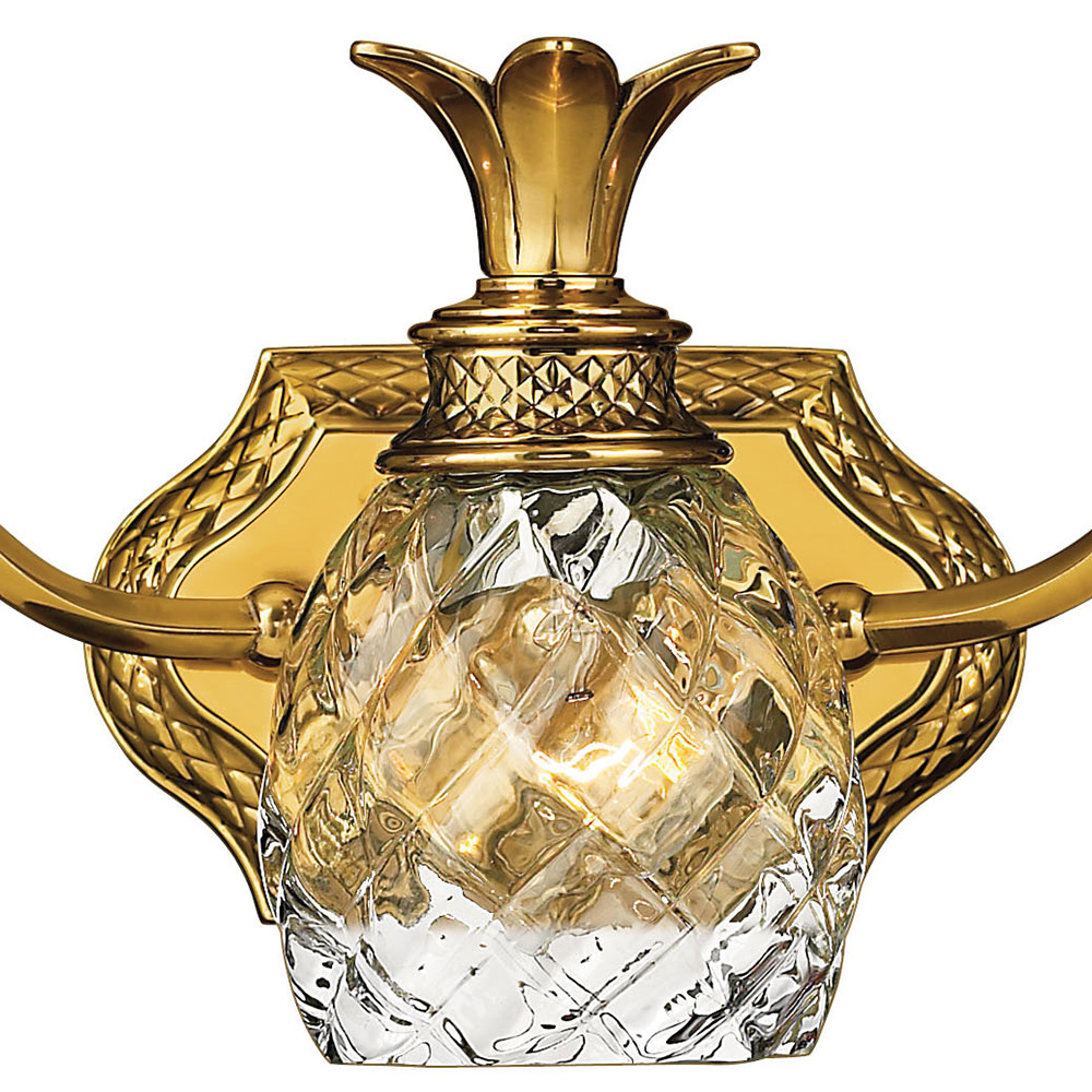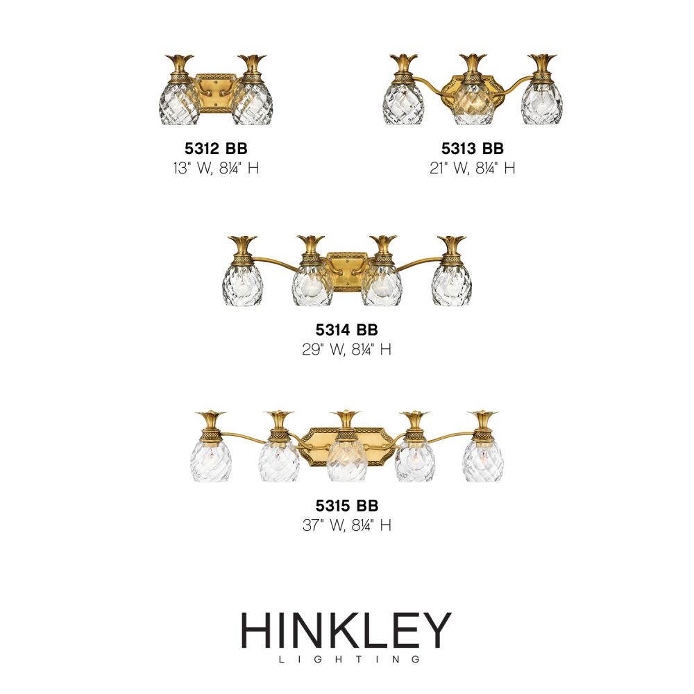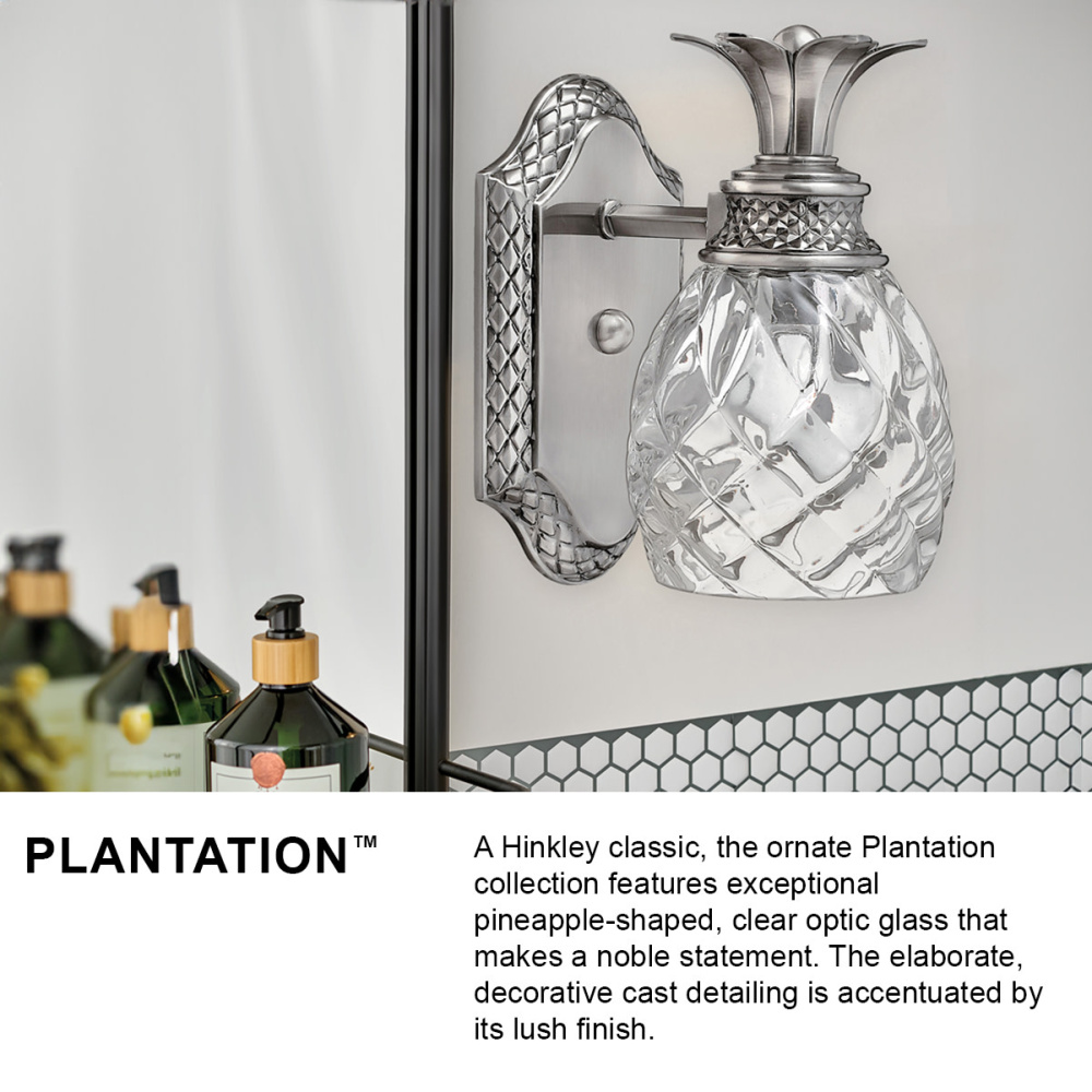 A Hinkley classic, the ornate Plantation collection features exceptional pineapple shaped, clear optic glass that makes a noble statement. The elaborate, decorative cast detailing is accentuated by its lush finish.