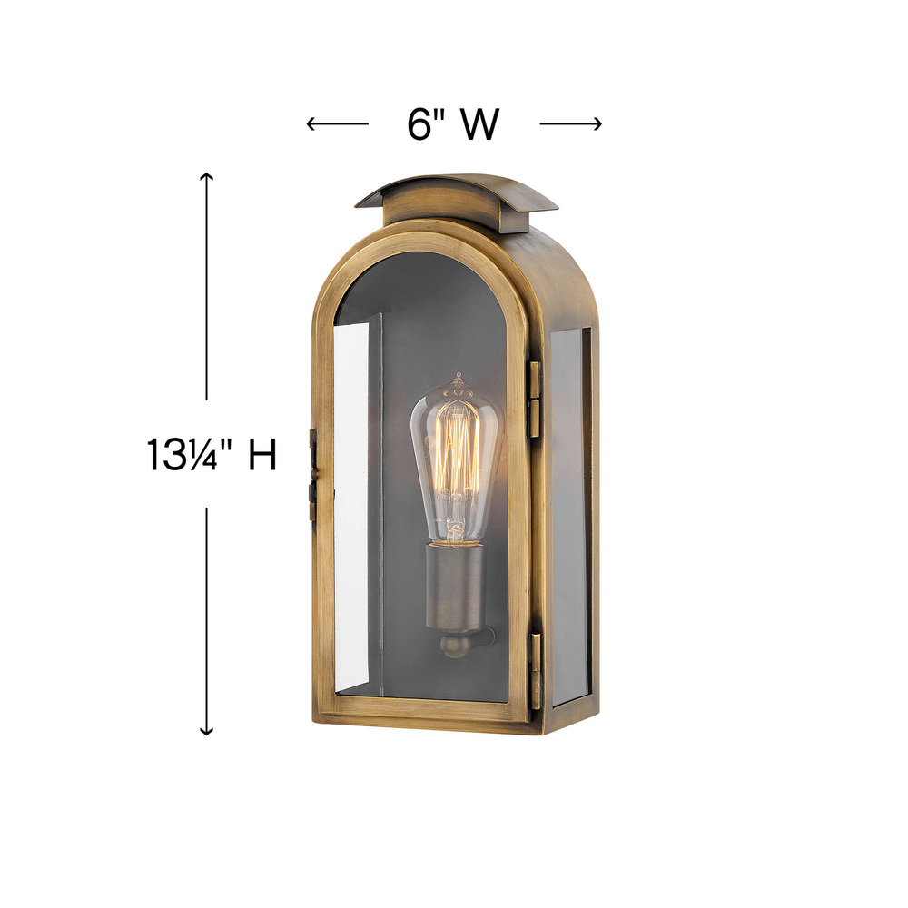 A stunning, rounded silhouette and arched roof composed of solid brass make Rowley a design standout. Weaving elements of classic Americana and industrial flair into a chic design with timeless appeal, this style features generous panes of clear glass and a functional front door for ease of bulbing.