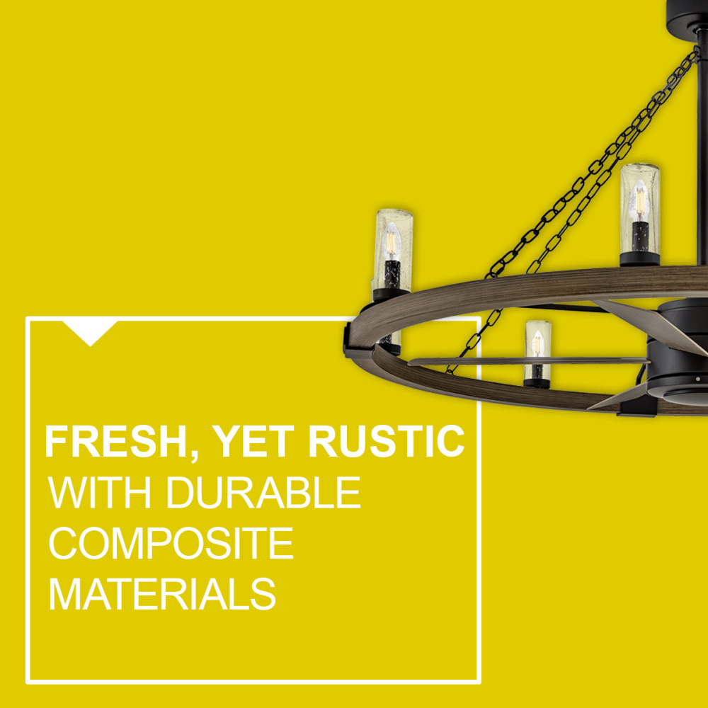 Fresh yet rustic, Sawyer will inject any outdoor living experience with the warm, cozy ambiance of an indoor setting. Available in variety of finish, accent, and blade combinations, Sawyer features durable composite materials and a versatile, wet-rated design. Operated by the HIRO control or WiFi compatible with the Hinkley App.