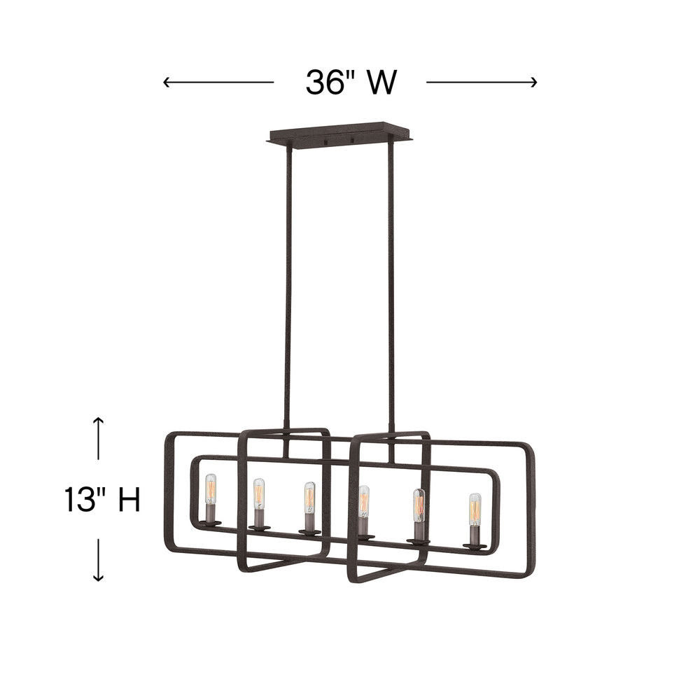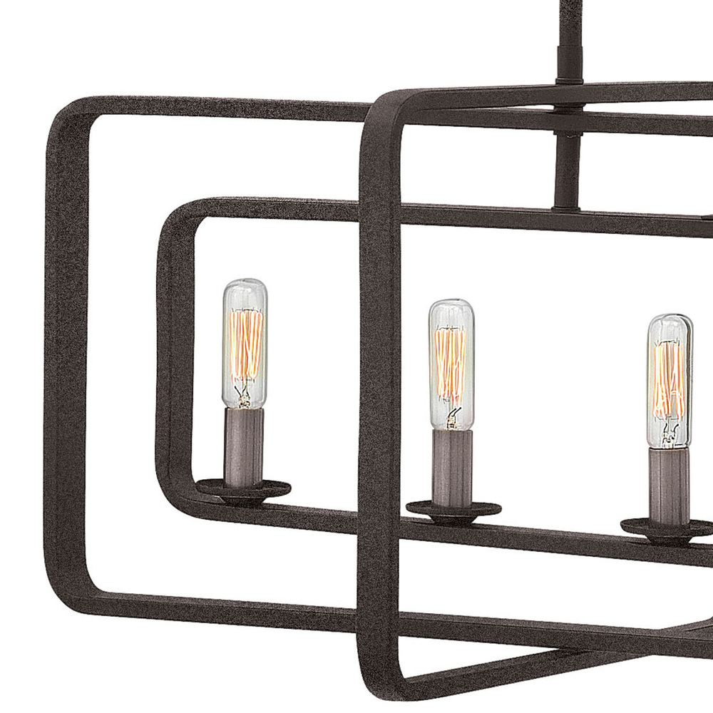 Quentin is constructed of angular forms that create a striking geometric interplay. This stem-hung collection features intersecting rectangles in a bold Buckeye Bronze finish, forming a modern silhouette. Candle sleeves in Heritage Brass add a distinctively vintage feel that is both hip and historical.