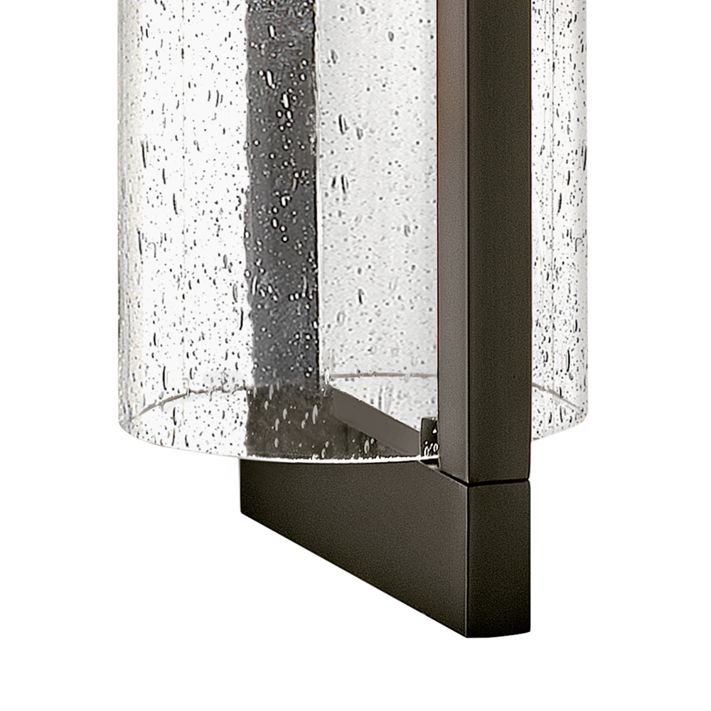Shelter’s minimalist style in aluminum creates a chic, dramatic statement as the light from above grazes through its clear seedy glass. Shelter comes standard Dark Sky compliant.