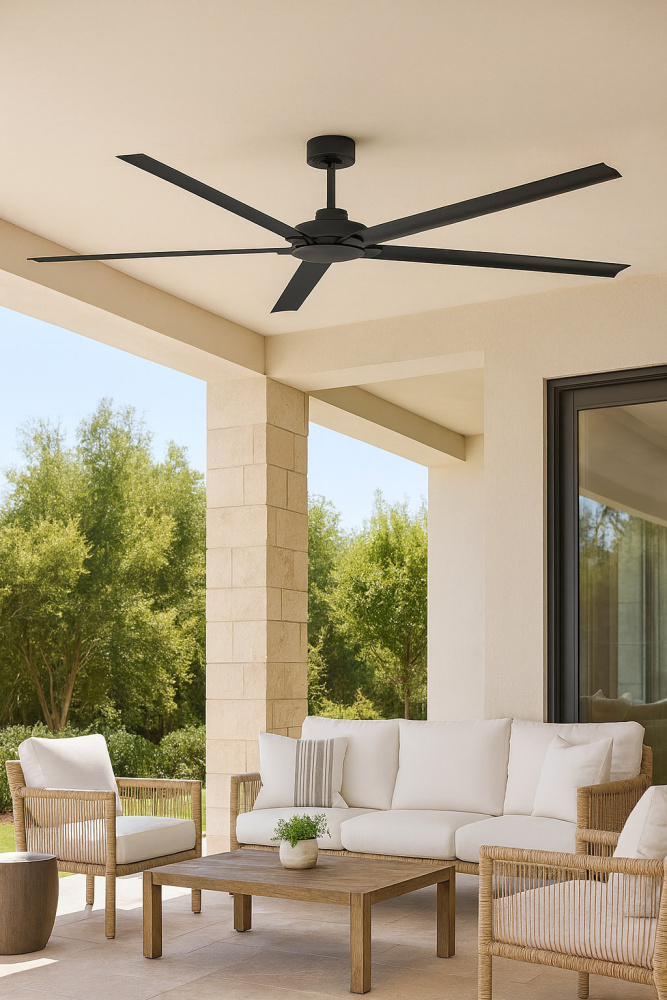 Vento's versatile wet-rated design features a solid steel construction with sturdy composite blades complemented by a chic Matte Black or Matte White finish to blend into any setting. Simple modern industrial styling is backed by a 6-speed DC motor that is WiFi enabled and ready to connect right out of the box. Operated by the HIRO control or WiFi compatible with the Hinkley App.